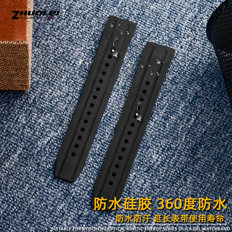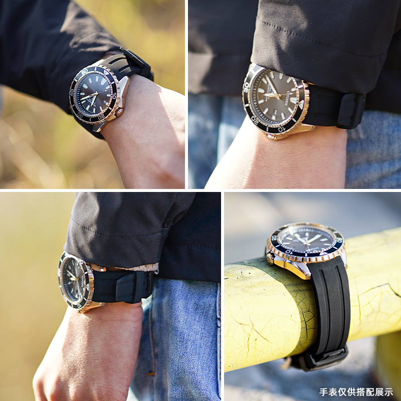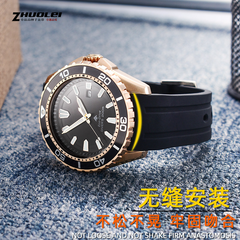 📚 适配西铁城BN0190-15E CA0718-13E 4386 BN0193男硅橡胶手表带22