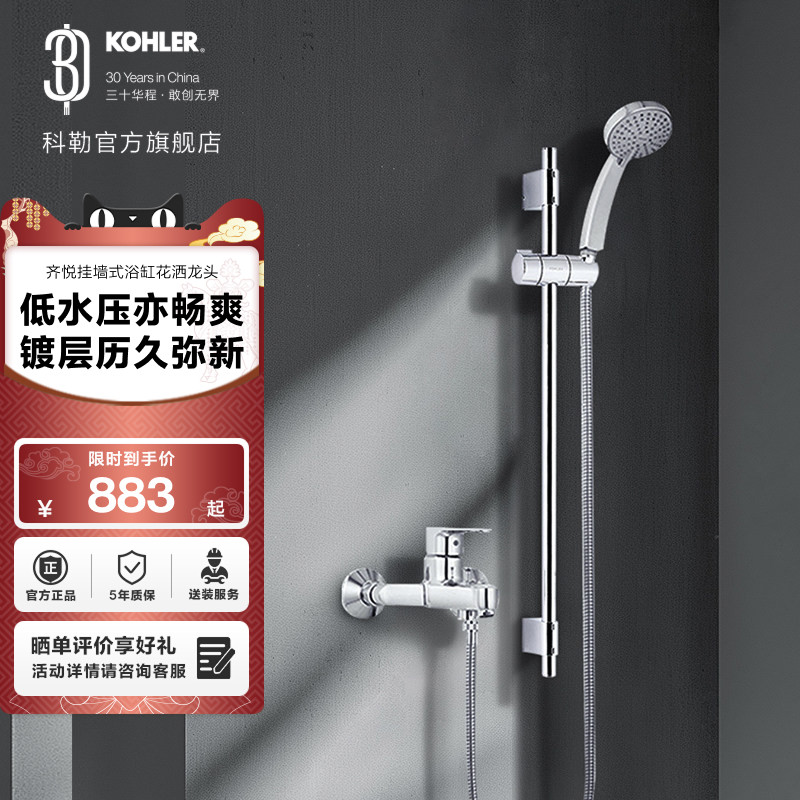 📚 科勒齐悦花洒龙头挂墙卫生间小户型花洒单把双控7686