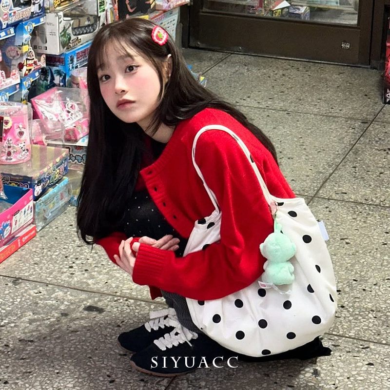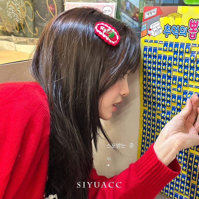 📚 金智雨chuu同款红色椭圆针织发夹女可爱刘海侧边夹甜美头饰发饰