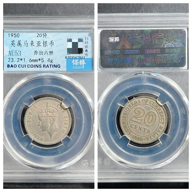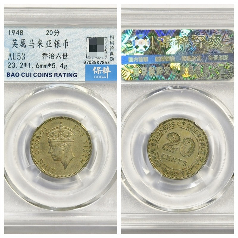 📚 闻德XF45评级英属马来亚银币1卢比20分乔治六世伊丽莎白二世元钱P