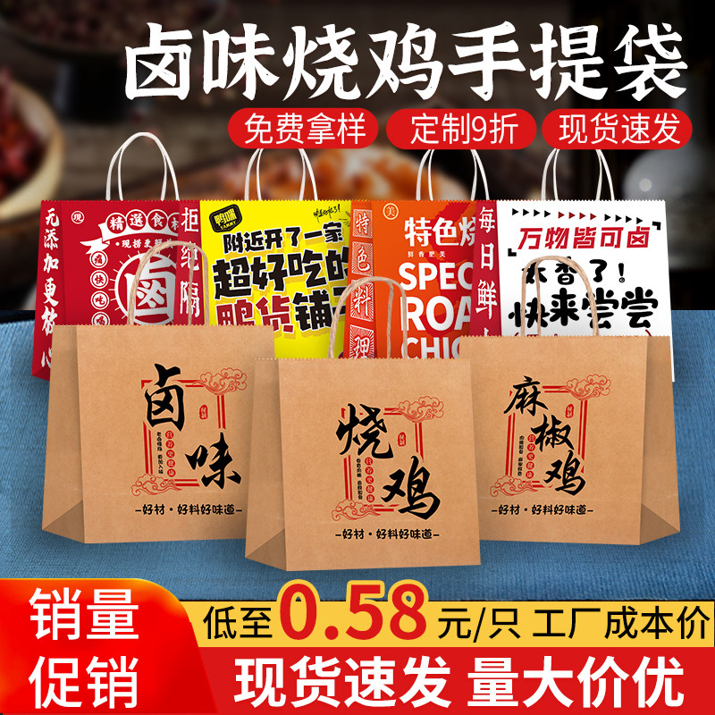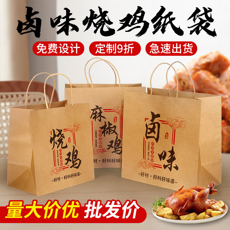 📚 现货熟食卤味包装袋袋子牛皮纸袋烧鸡麻椒叫化鸡扒鸡手提纸袋定制