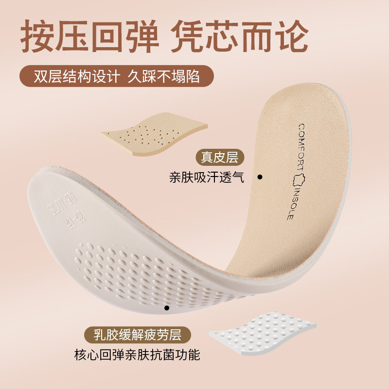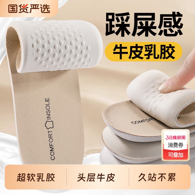 📚 运动乳胶鞋垫女款牛皮气垫踩屎感软底舒适久站真皮按摩防痛减震
