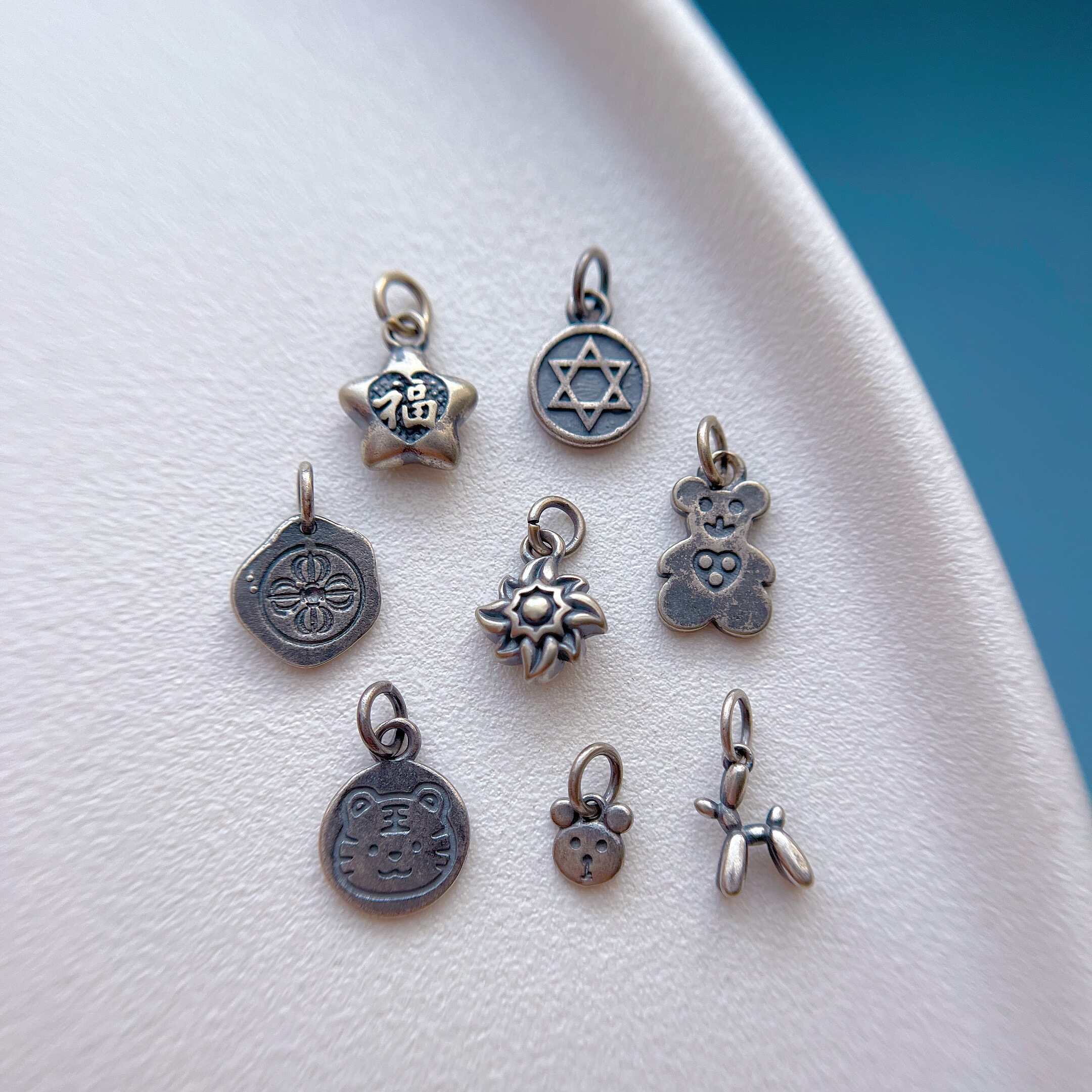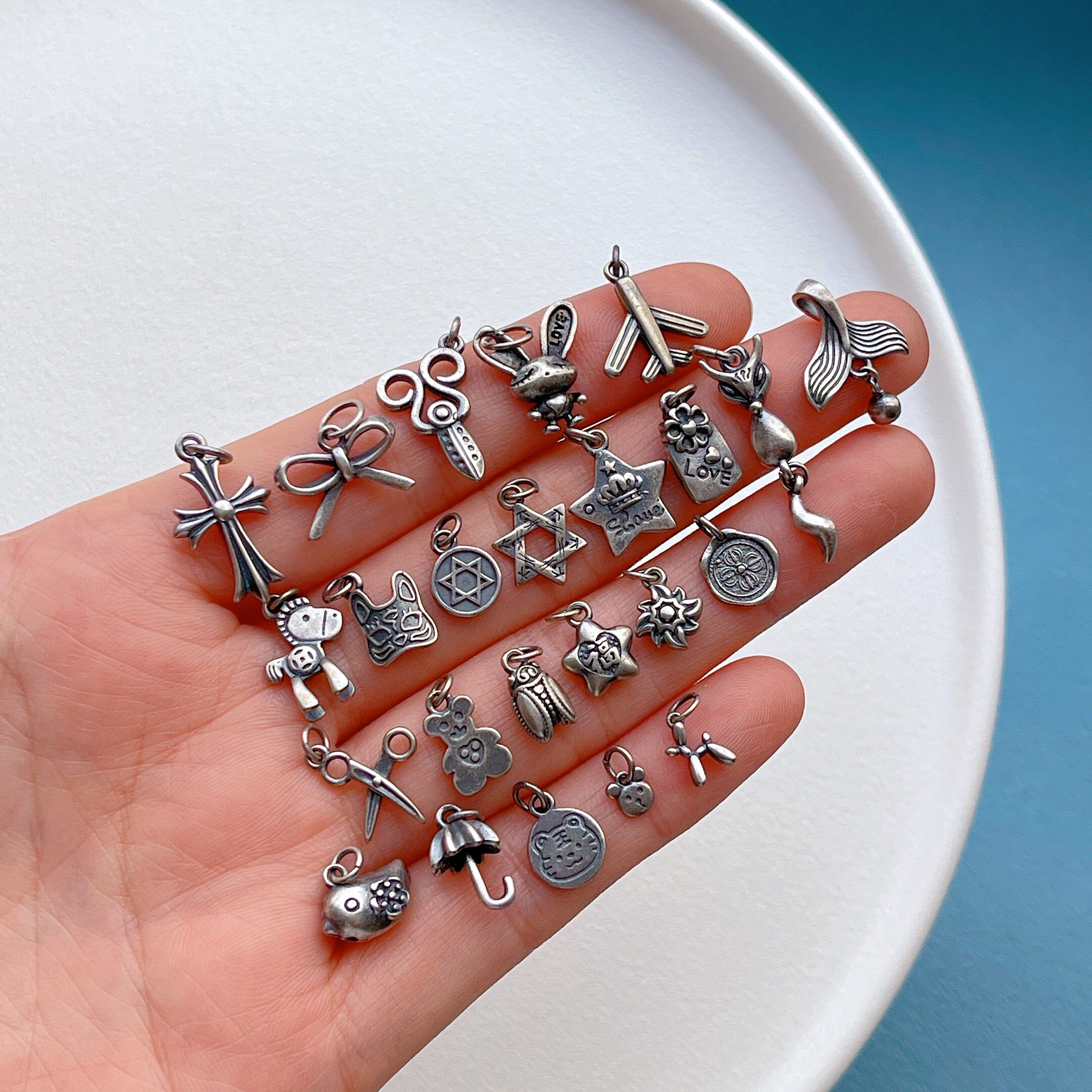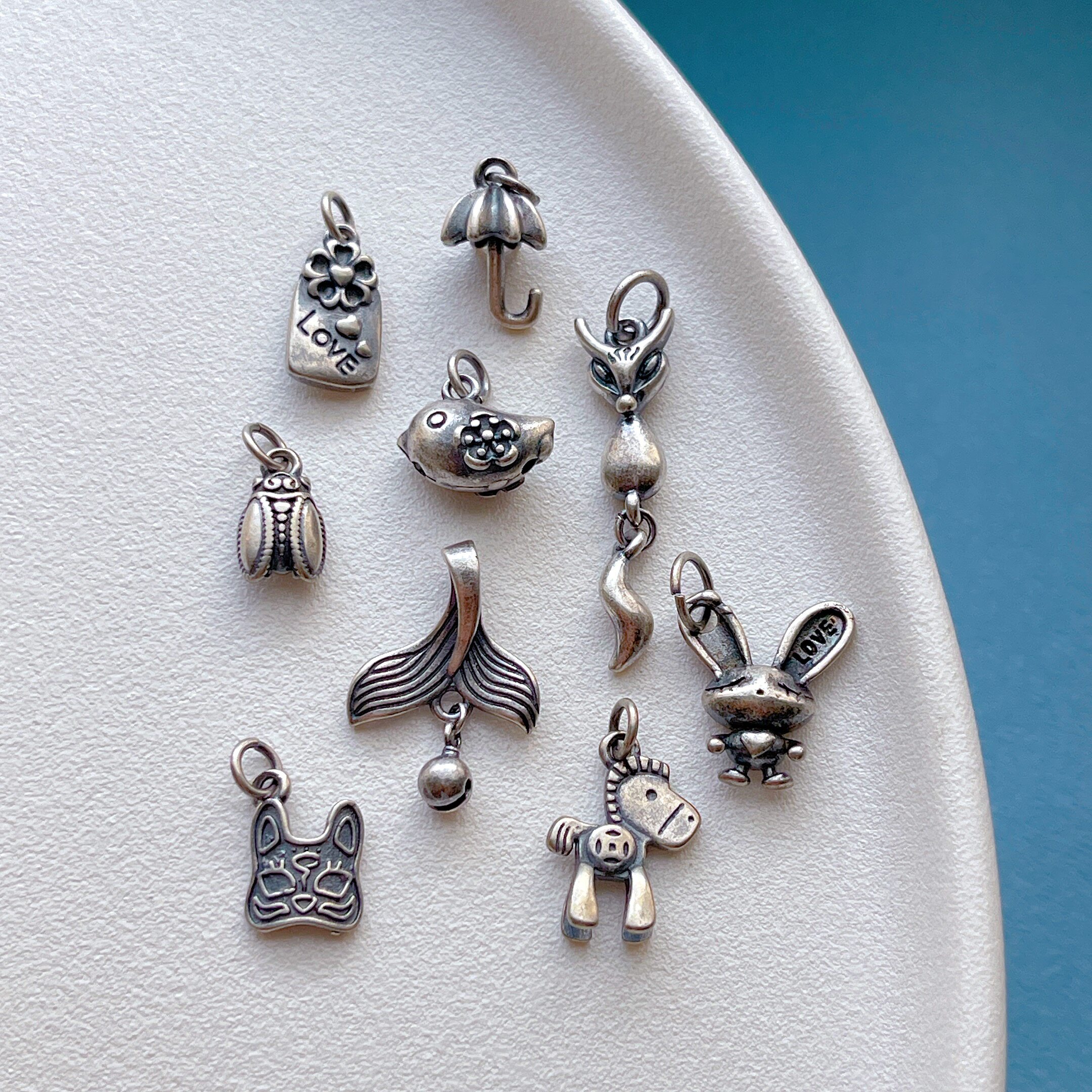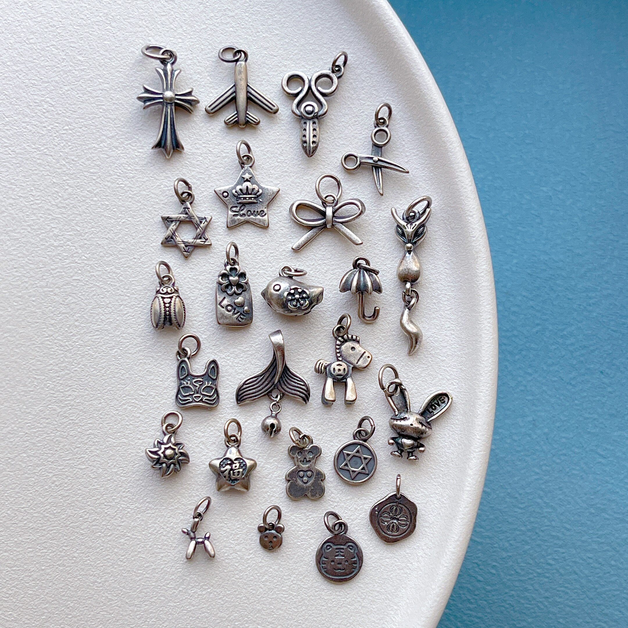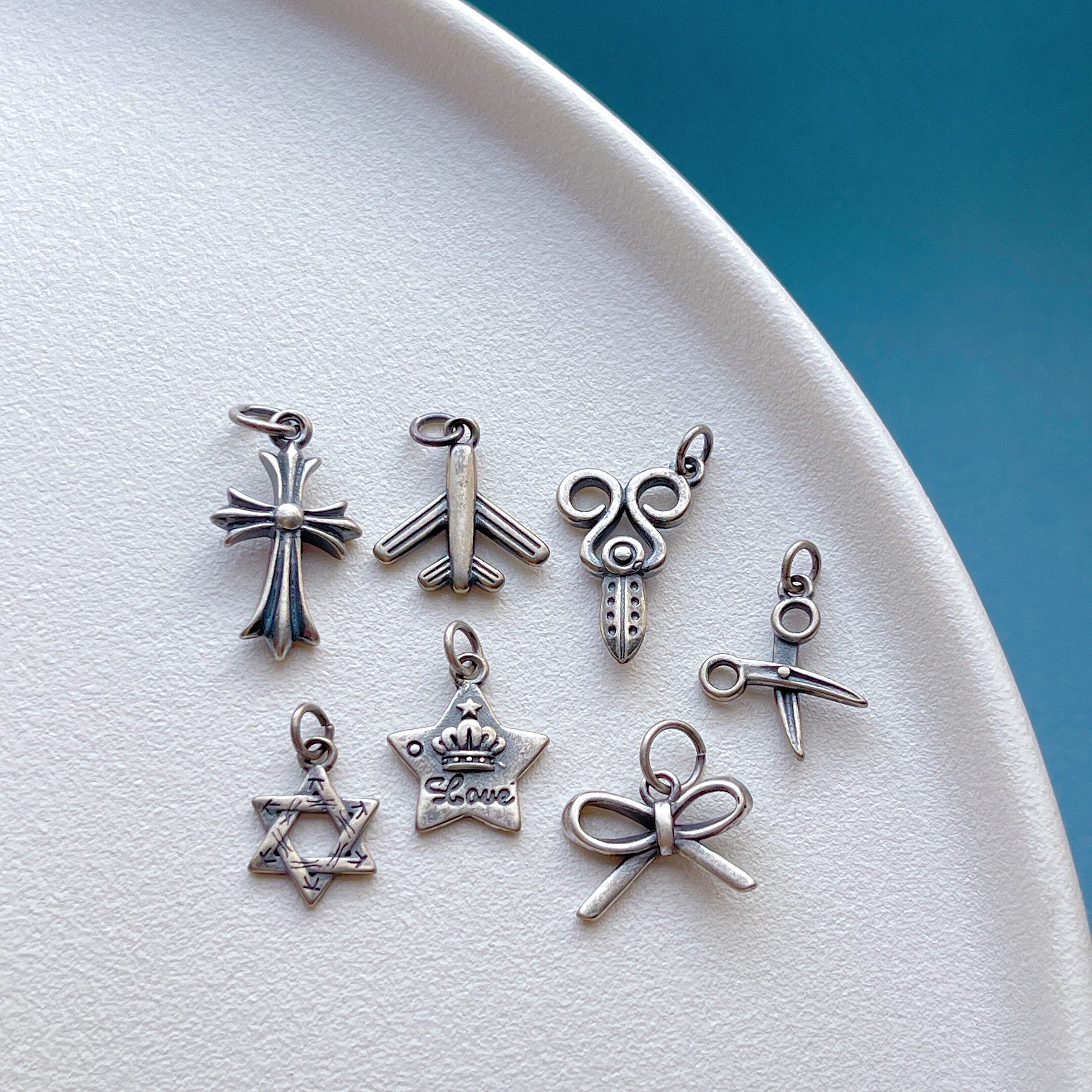 📚 老银饰品配件小熊老虎马上有钱鱼尾小鸟剪刀蝴蝶结小飞机吊坠三七