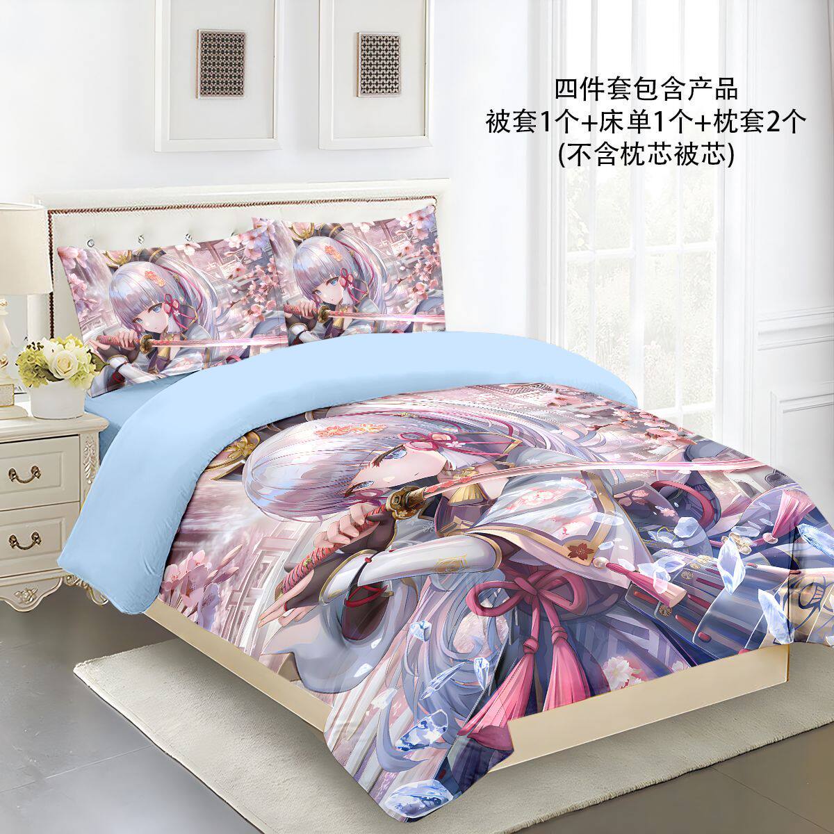 📚 原神被套申鹤凌华床单四件套宅男卧室学生宿舍床上三件套床单床笠