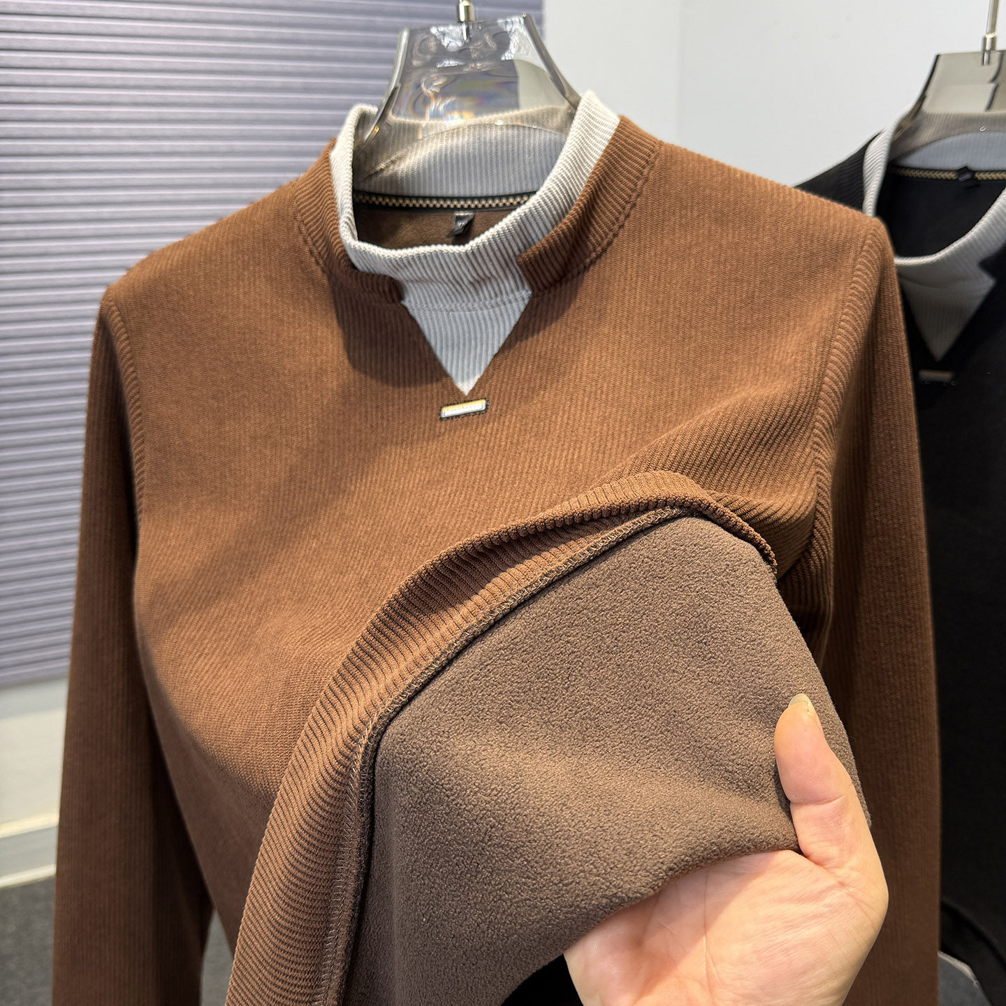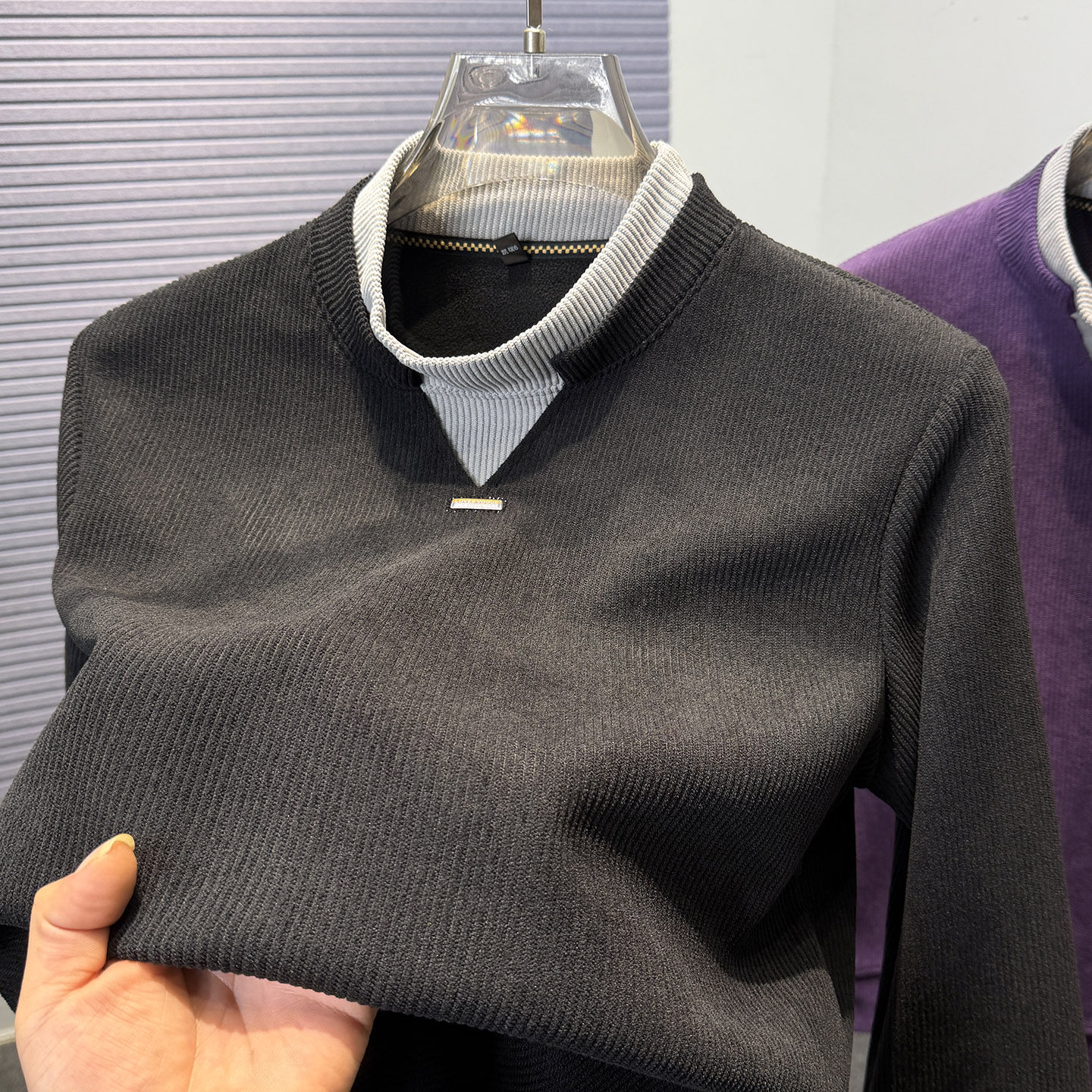 📚 奥利绒半高领假两件加绒卫衣男冬季男款纯色套头一体绒针织上衣服