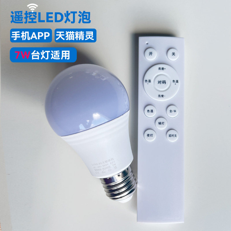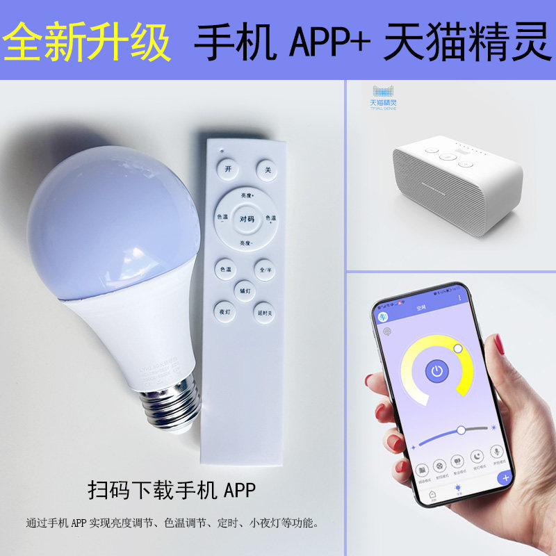 📚 220V无极遥控调光调色LED灯泡7W12W三档变光天猫精灵手机APP暖白