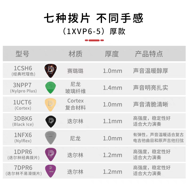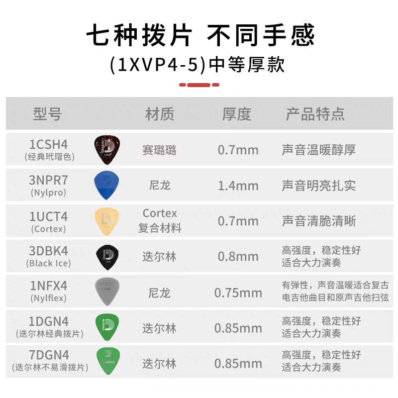 📚 达达里奥电吉他木吉他拨片防滑速弹7片装组合装多种厚度1XVP4-5