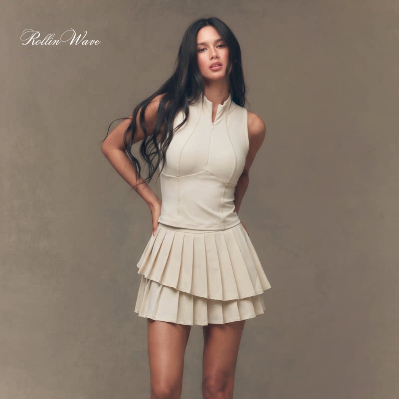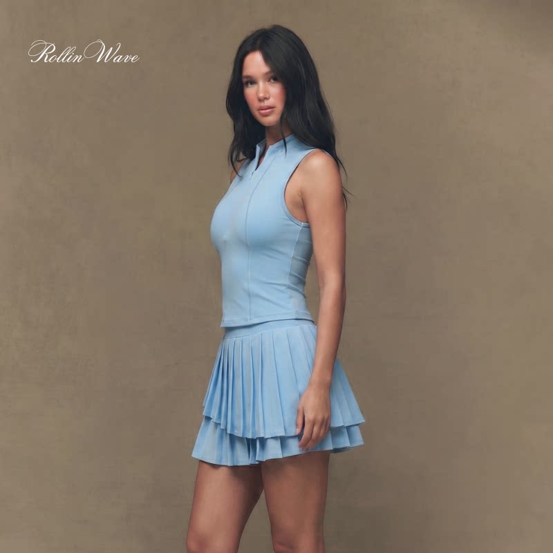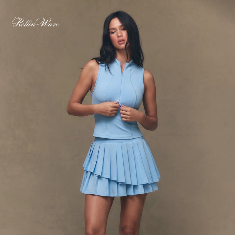 📚 rw042 塞壬上衣双层蛋糕开花裙套装带胸垫打底裤网球裙套装