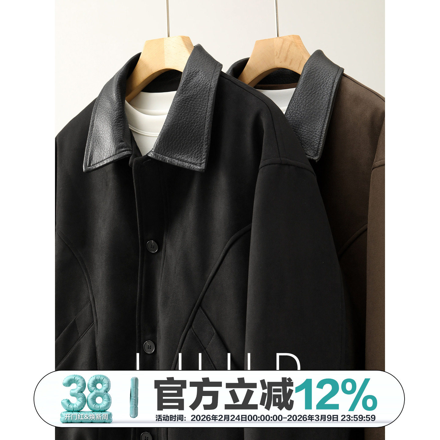 📚 特价 85白鸭绒PU皮翻领男士羽绒服外套冬季麂皮绒短宽款机车夹克