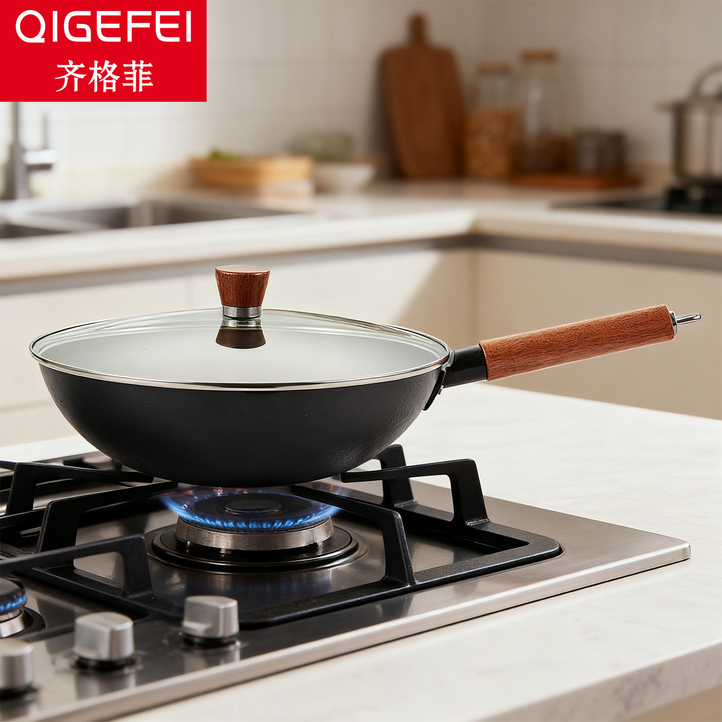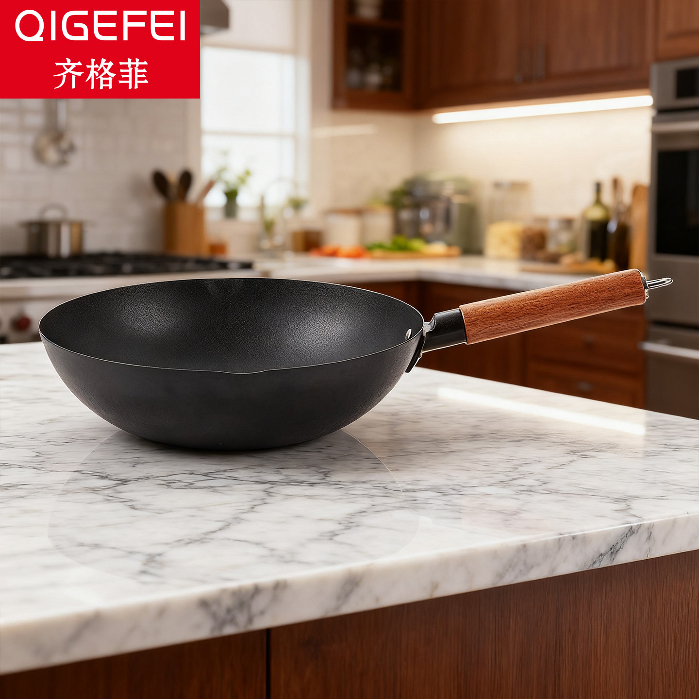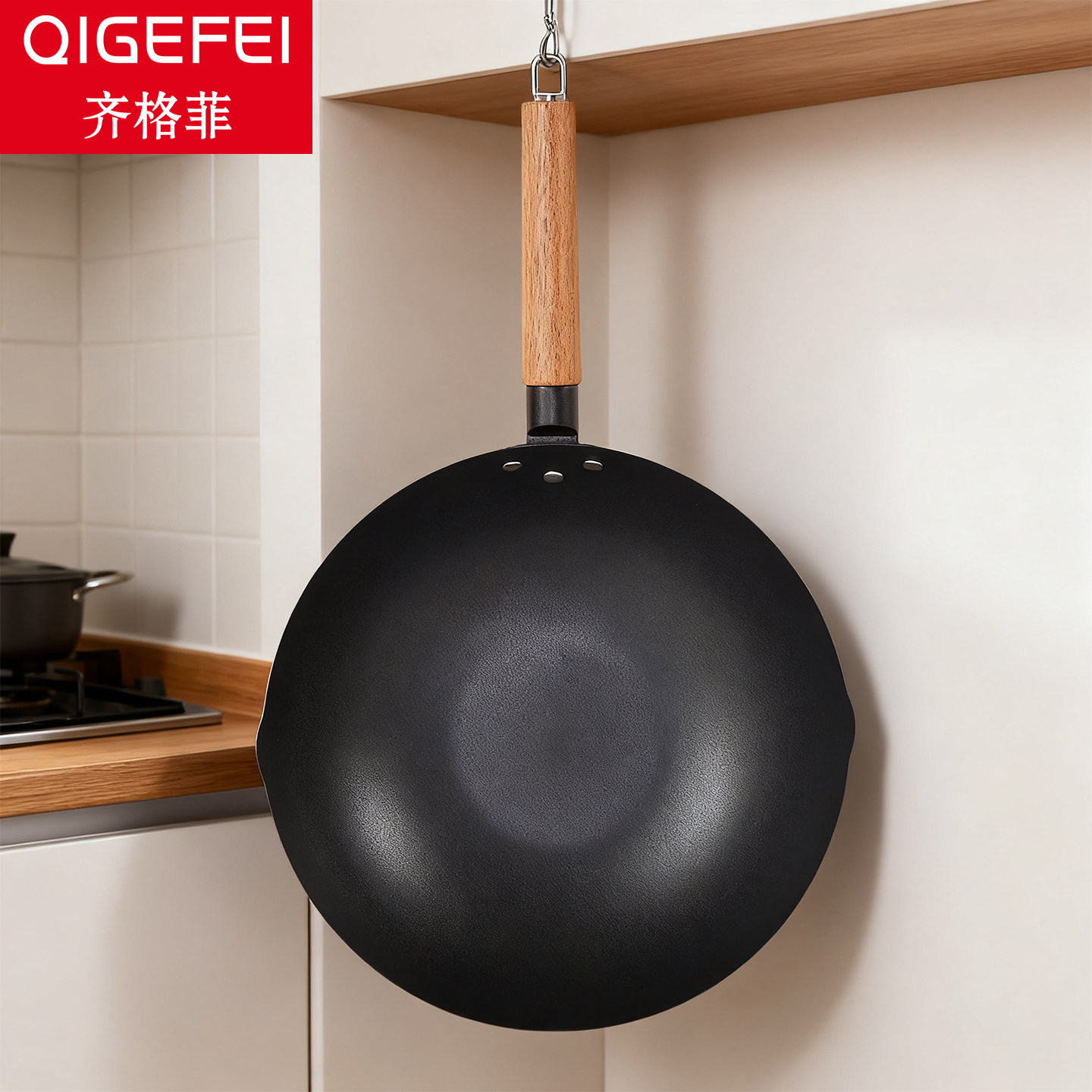 📚 齐格菲精铁铁锅无涂层炒菜锅家用物理不易粘锅女士超轻便爆炒炒锅
