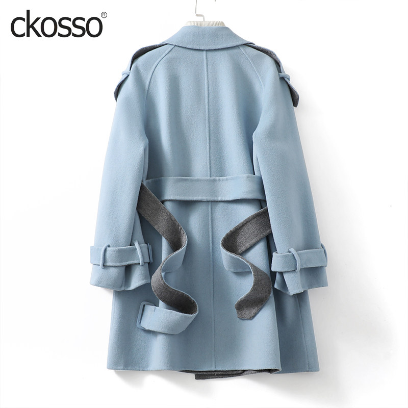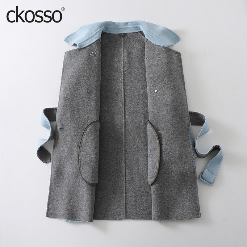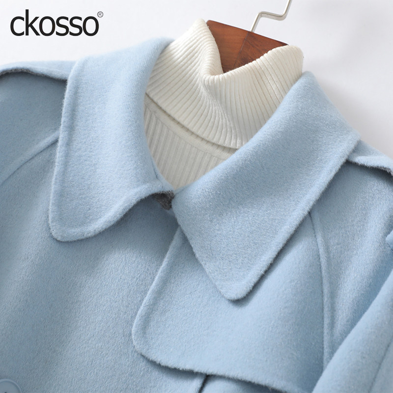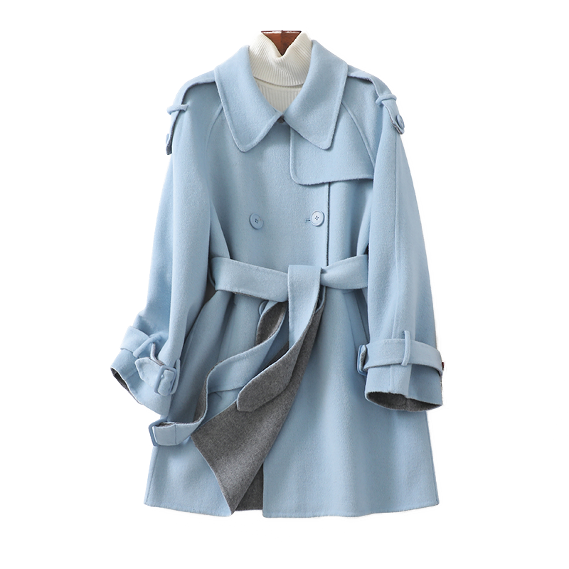 📚 双面羊毛大衣女中长款系带收腰减龄小个子秋冬新款轻奢羊毛呢外套