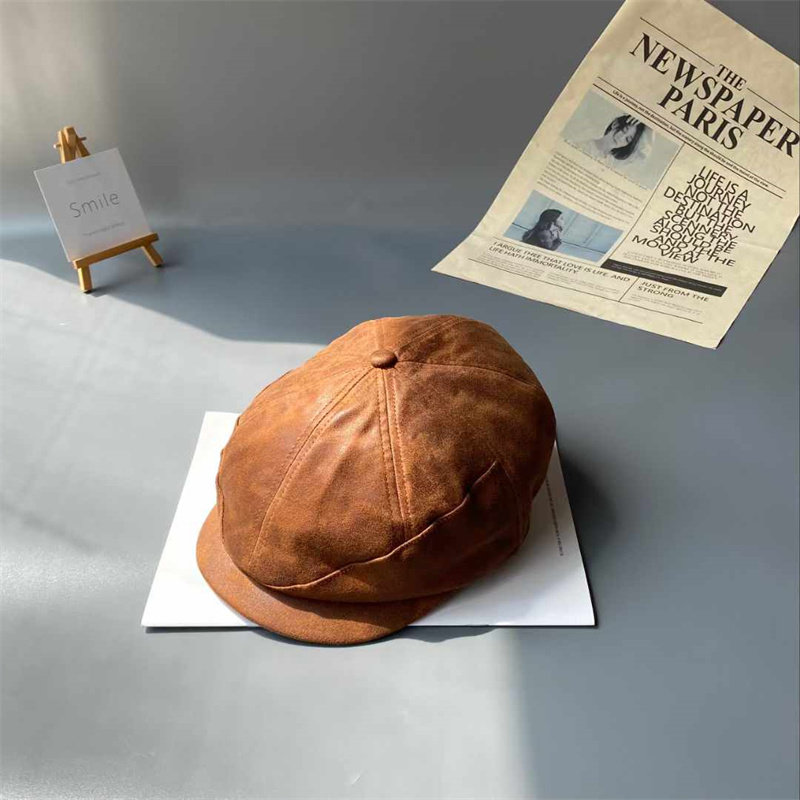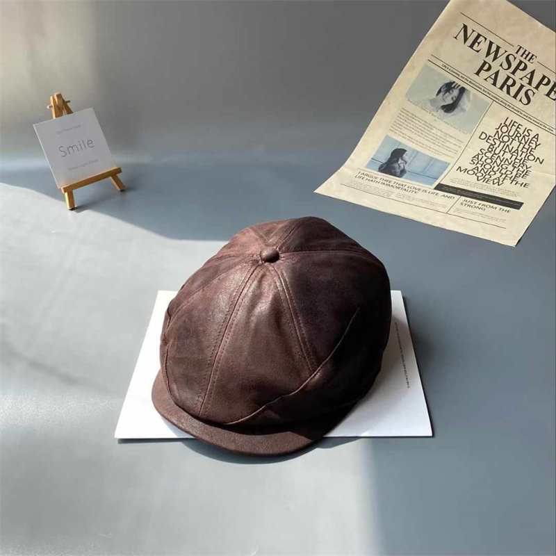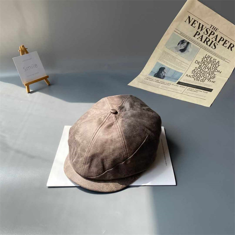 📚 安可拉红日系复古前进帽女英伦鹿皮绒做旧鸭舌帽子春秋反戴报童帽