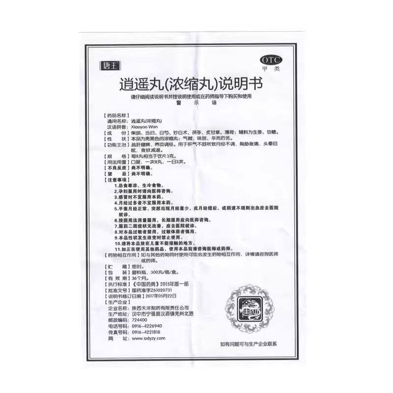 📚 唐王 逍遥丸(浓缩丸) 300丸*1瓶/盒 疏肝健脾 养血调经