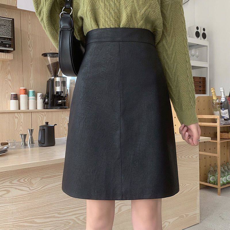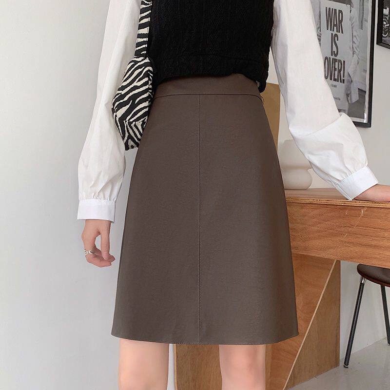 📚 咖色哑光磨砂半身裙皮裙中长款女大码胖MM高腰遮胯显瘦a字包臀裙