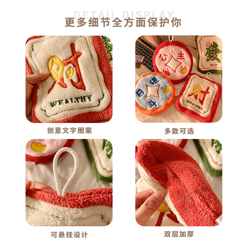 📚 发财擦手巾可爱挂式超强吸水毛巾卫生间加厚洗手帕厨房抹布不发臭