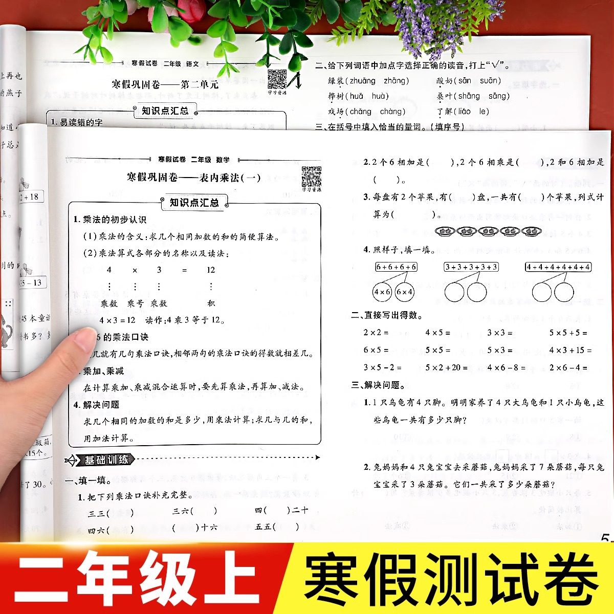 📚 二年级上册寒假试卷语文数学测试卷全套人教版小学2年级上下册同步专项训练单元期末冲刺100分练习题练习册衔接作业下册教材