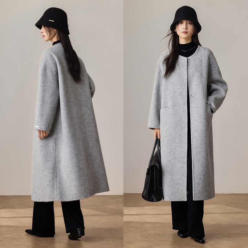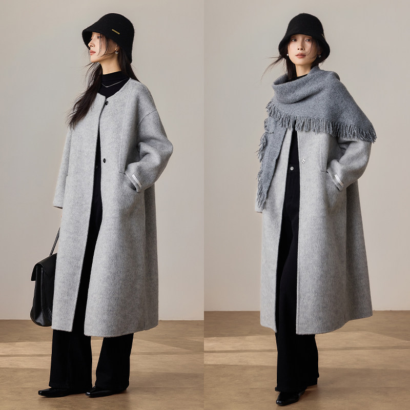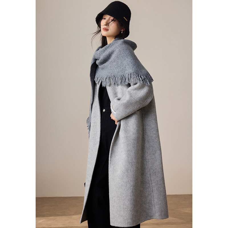 📚 VICTORIA&VERA冬季双面呢大衣宽松暗扣长款赠同色流苏围巾静谧