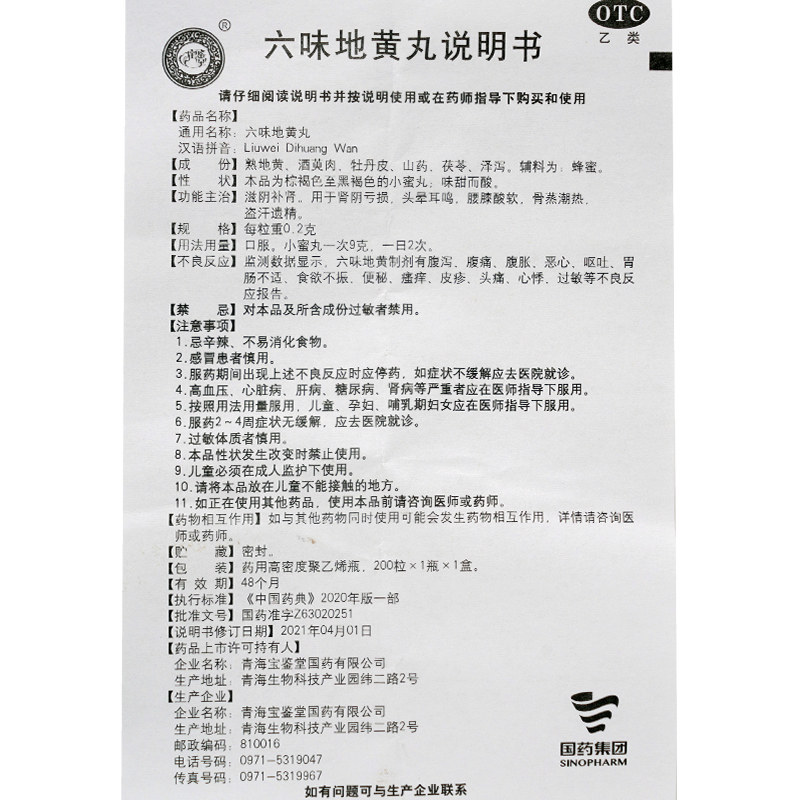 📚 宝鉴堂 六味地黄丸 0.2g*200粒*1瓶/盒 滋阴补肾
