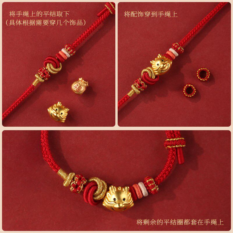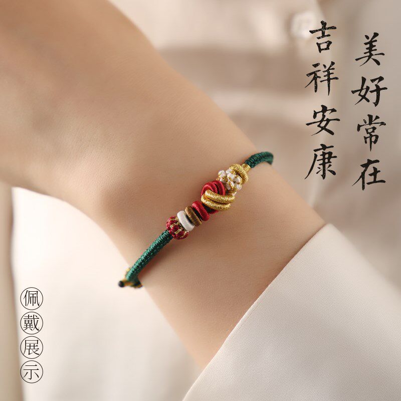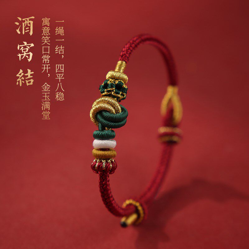 📚 桃花酒窝结手绳手工编织可穿v珠红手链diy配件送女朋友礼物小红绳