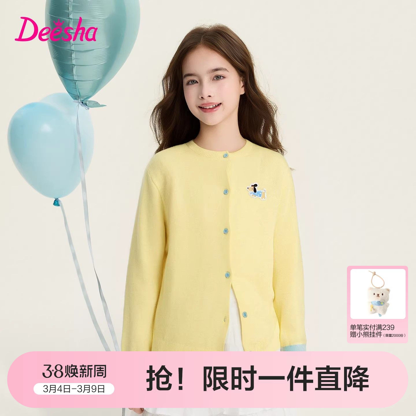 📚 笛莎官方旗舰童装女童针织开衫春季新款儿童外套大童上衣宝宝毛衣