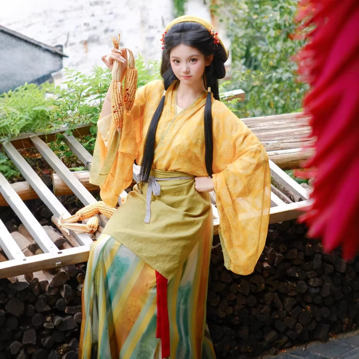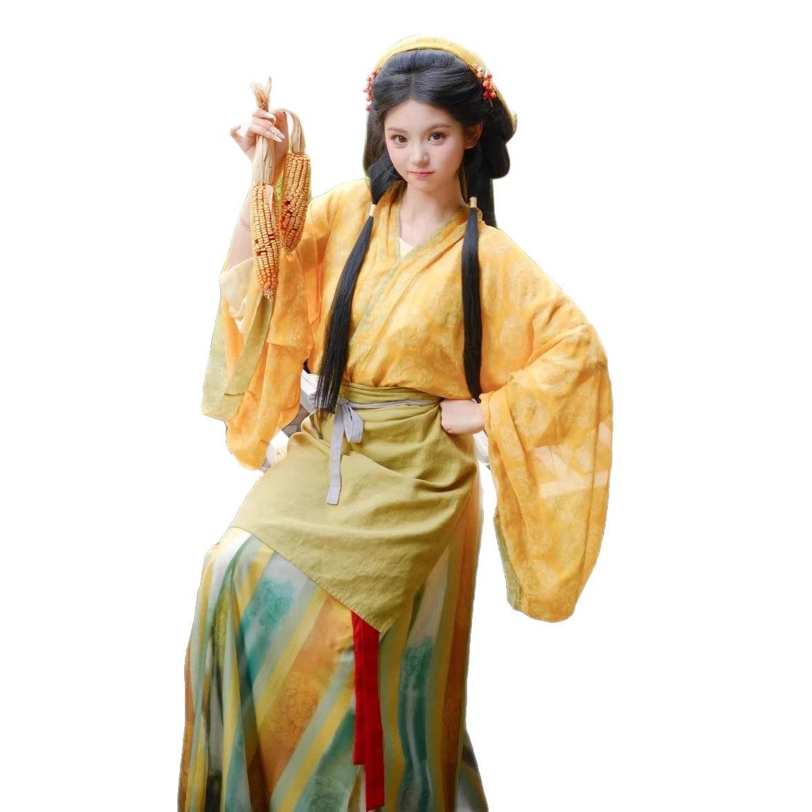 📚 平民汉服黄色围裳田园风古装种田文女主古风晒秋演出服装2025新款