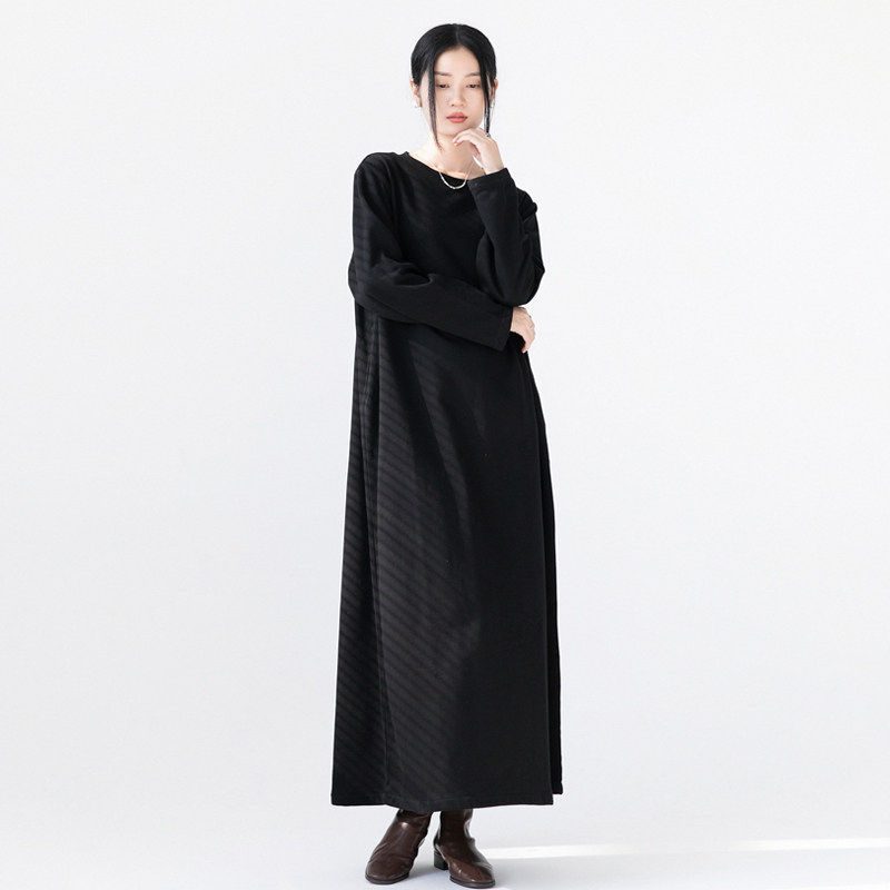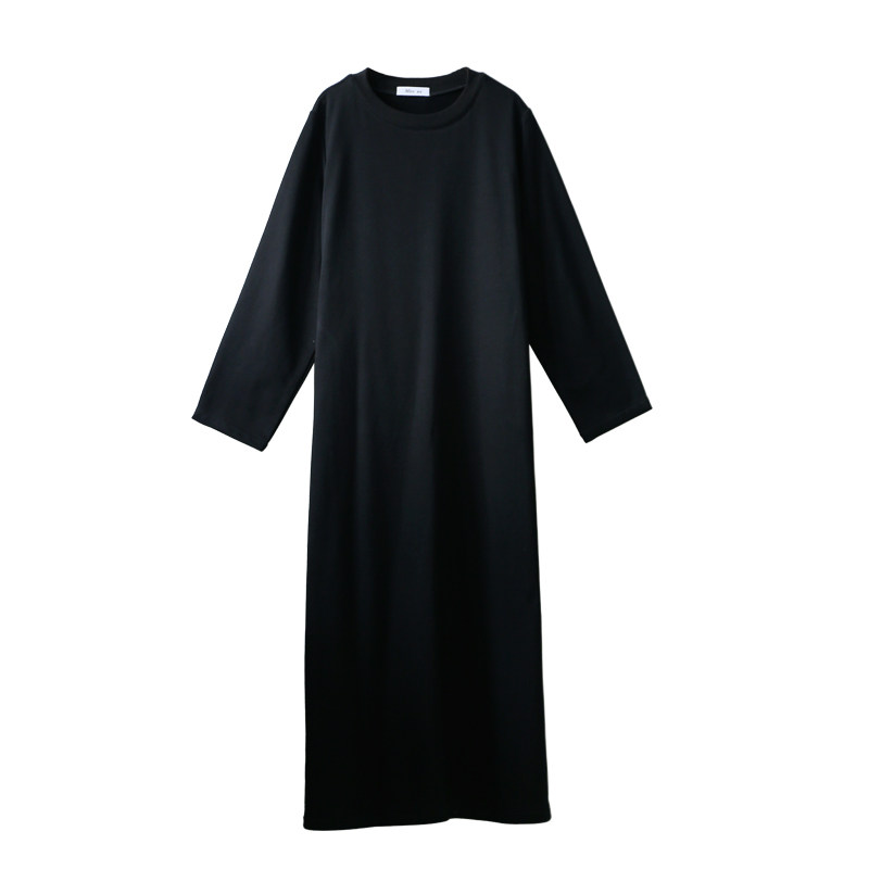 📚 百搭黑色纯棉袍子式卫衣连衣裙原创设计2025秋款宽松显瘦简约长裙