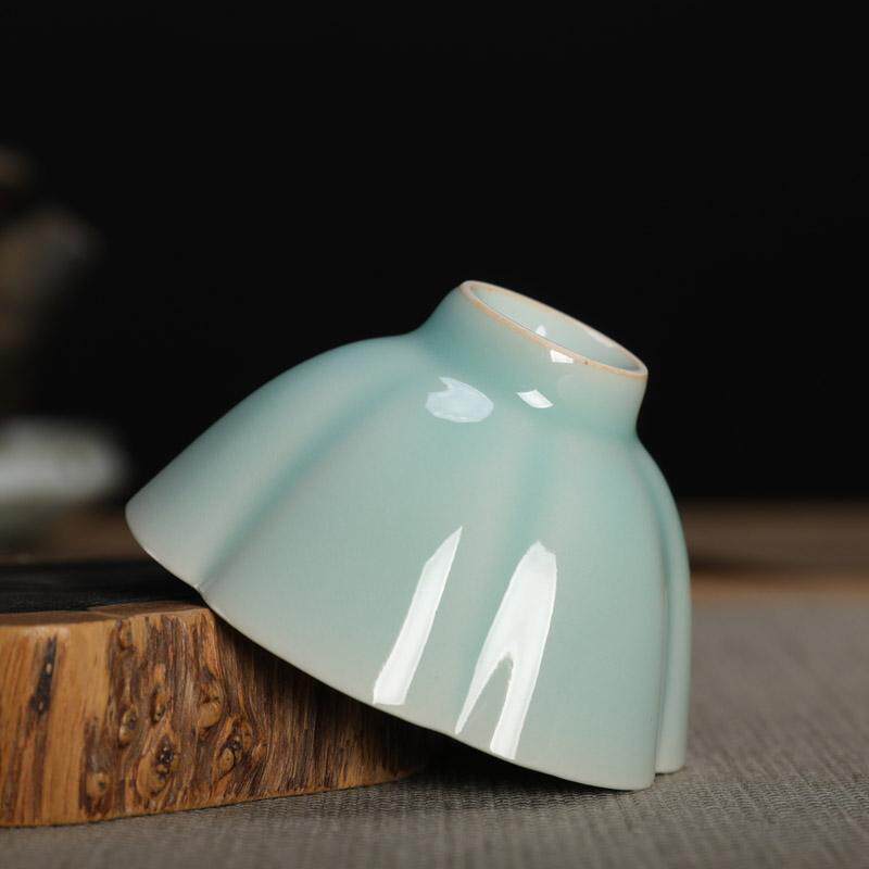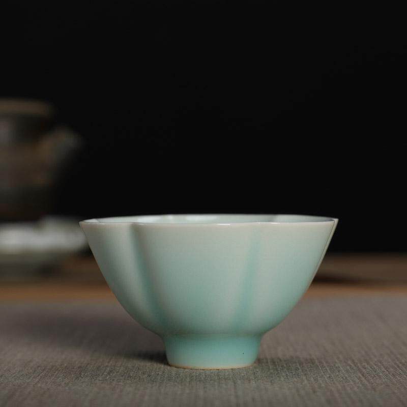 📚 龙泉弟窑青瓷粉青釉陈湘源花口杯主人杯品茗杯子陶瓷茶具功夫茶杯