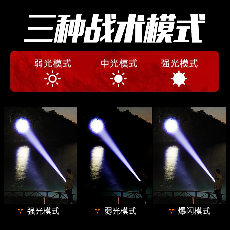 📚 全新升级德国进口家用强光手电筒可充电户外登山潮流便携式