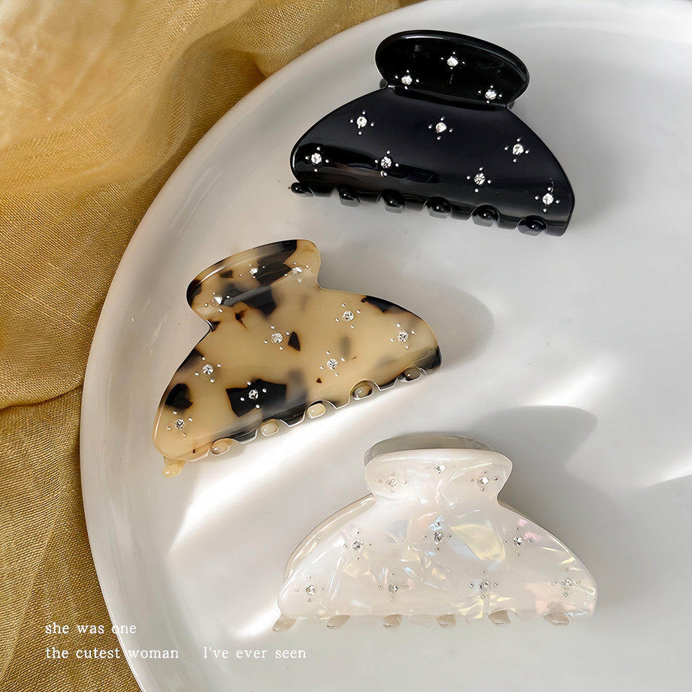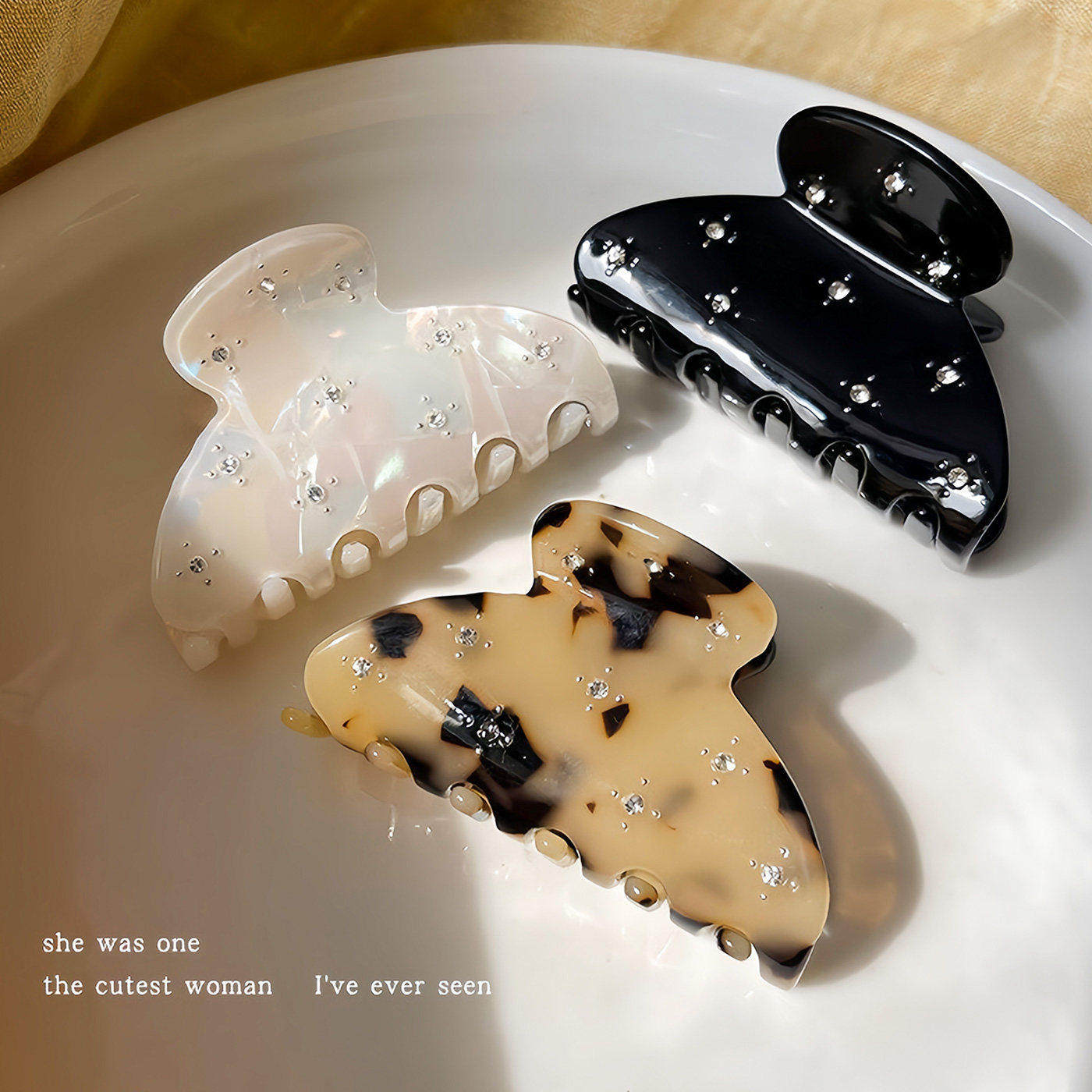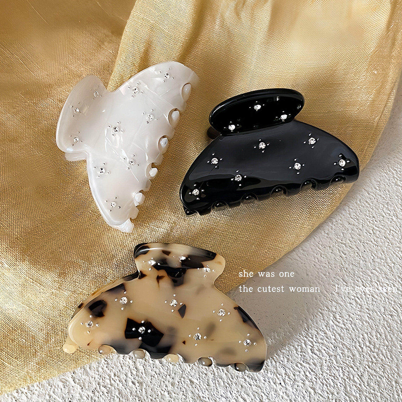 📚 高级感抓夹繁星镶钻鲨鱼夹醋酸发量少半扎发夹子可爱后脑勺发饰女