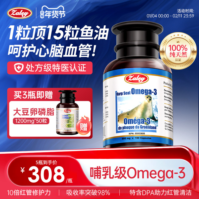 📚 Zaley加拿大进口海豹油护心脑血管血脂深海鱼油omega3官方旗舰店