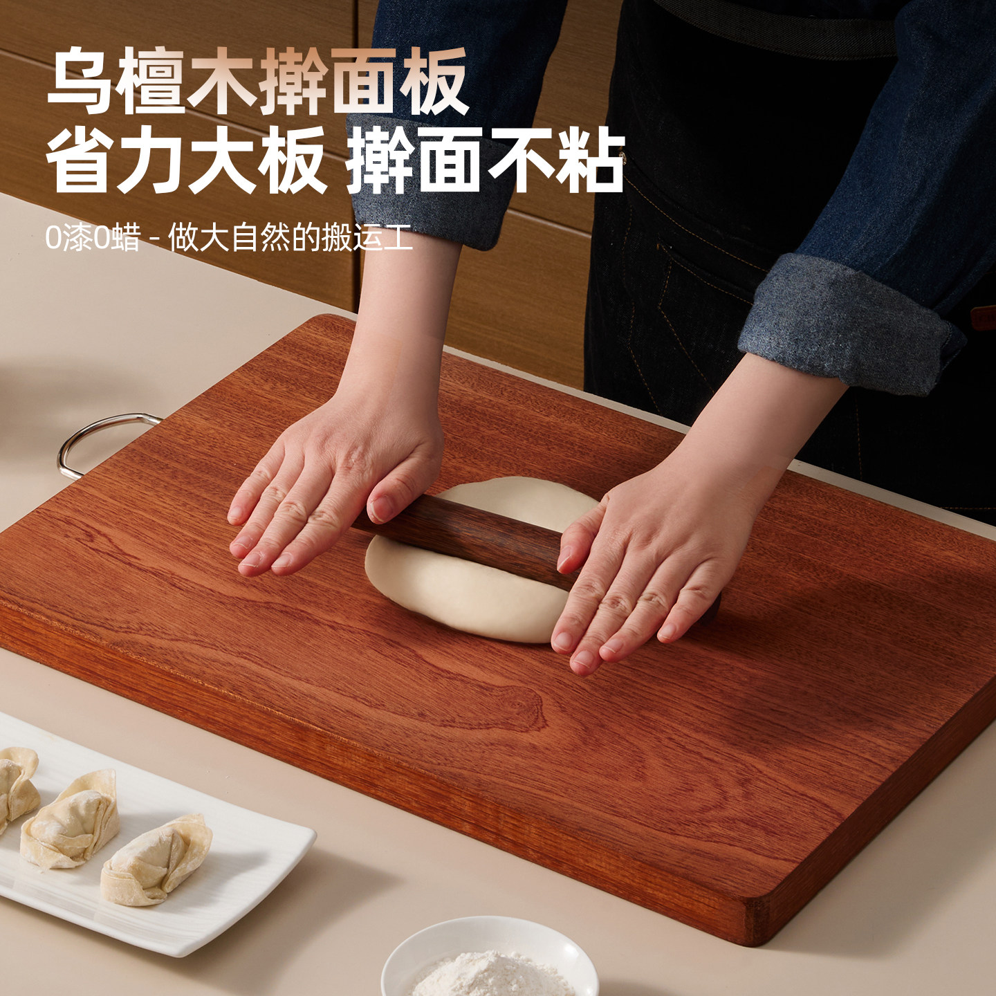 📚 好管家乌檀木擀面板案板家用和面板饺子实木切菜板厨房揉面砧板
