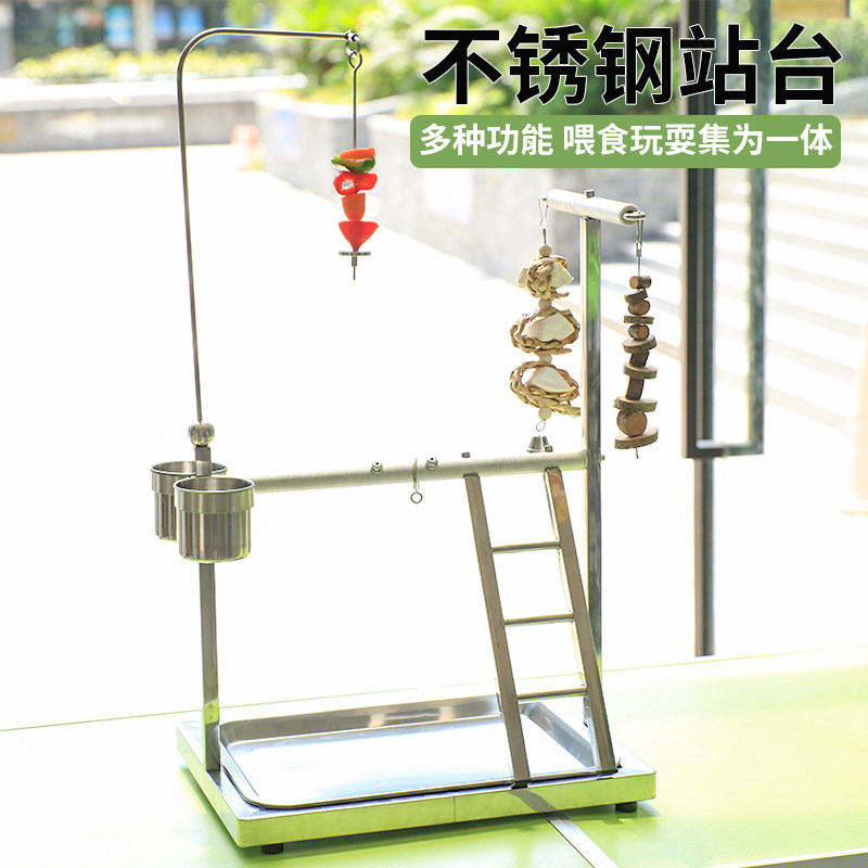 📚 鹦鹉桌面站架鸟不锈钢站台中小型落地站杆鹦鹉玩具定点排便站架子