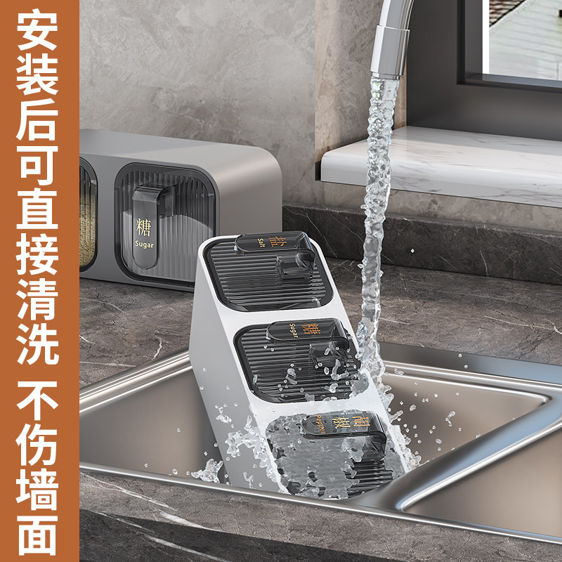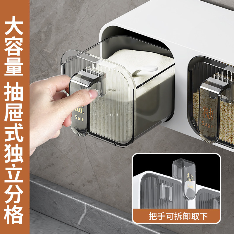 📚 调味盒家用厨房收纳置物架壁挂式免打孔盐味精佐料调料罐多格一体