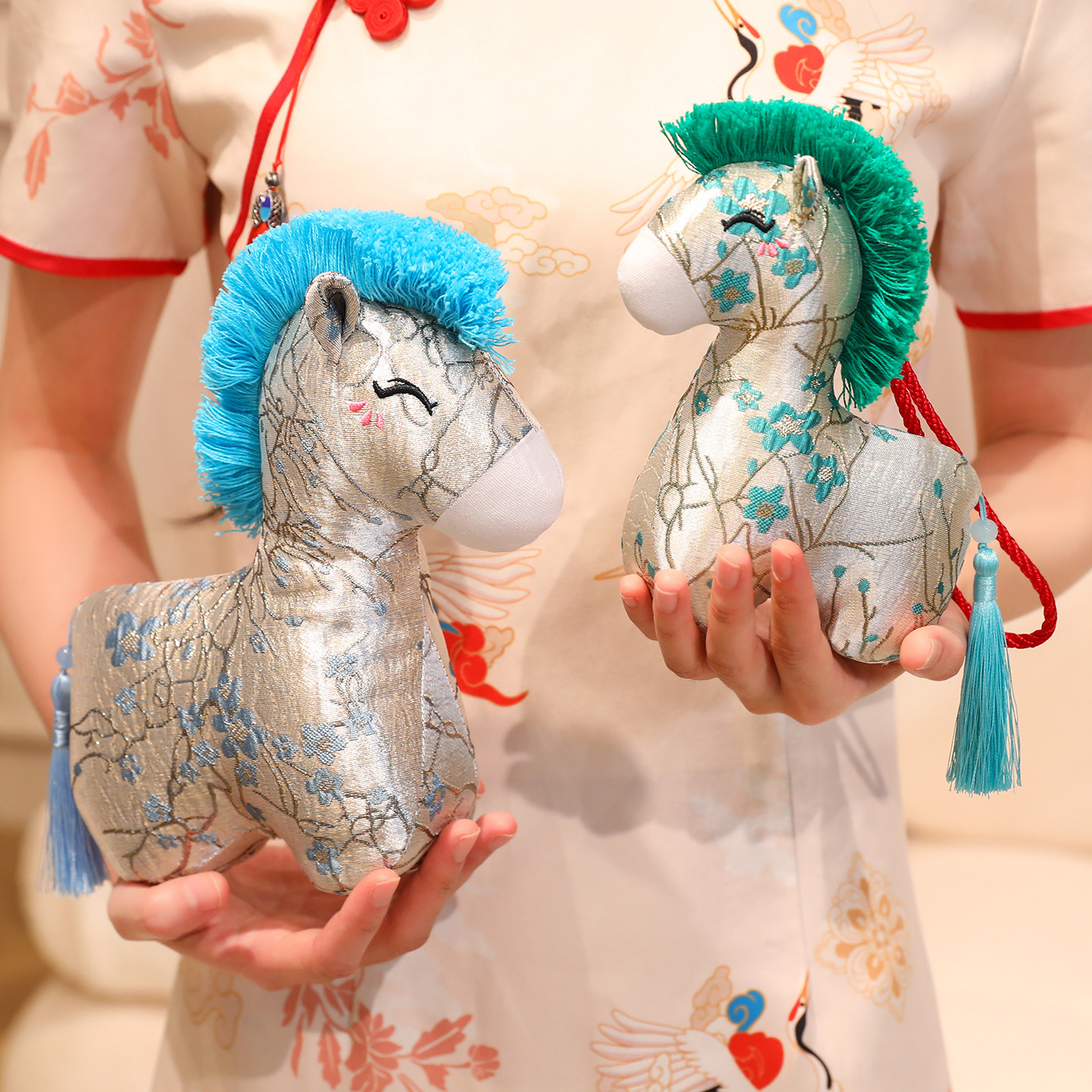 📚 布艺马玩偶挂件宋锦四季马毛绒挂饰马年吉祥物公仔布娃娃新年礼品