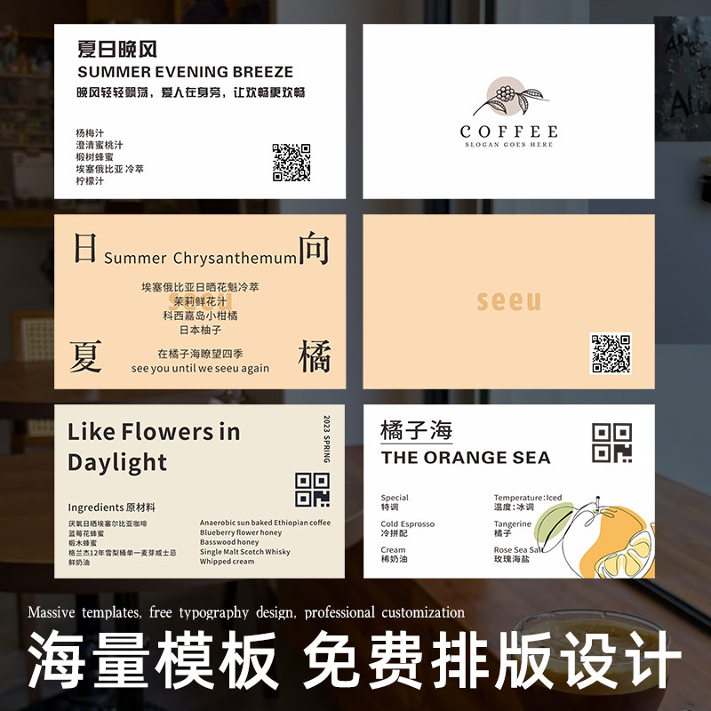 📚 咖啡风味卡片定制咖啡豆配料介绍硬卡纸打印刷特调产品明信片设计外卖饮料手冲饮品冲泡说明卡二维码名片制作