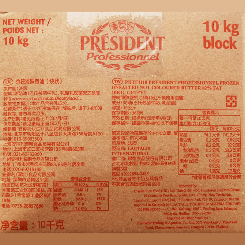 📚 总统发酵黄油10kg法国进口淡味动物大黄油饼干雪花酥甜点烘焙原料