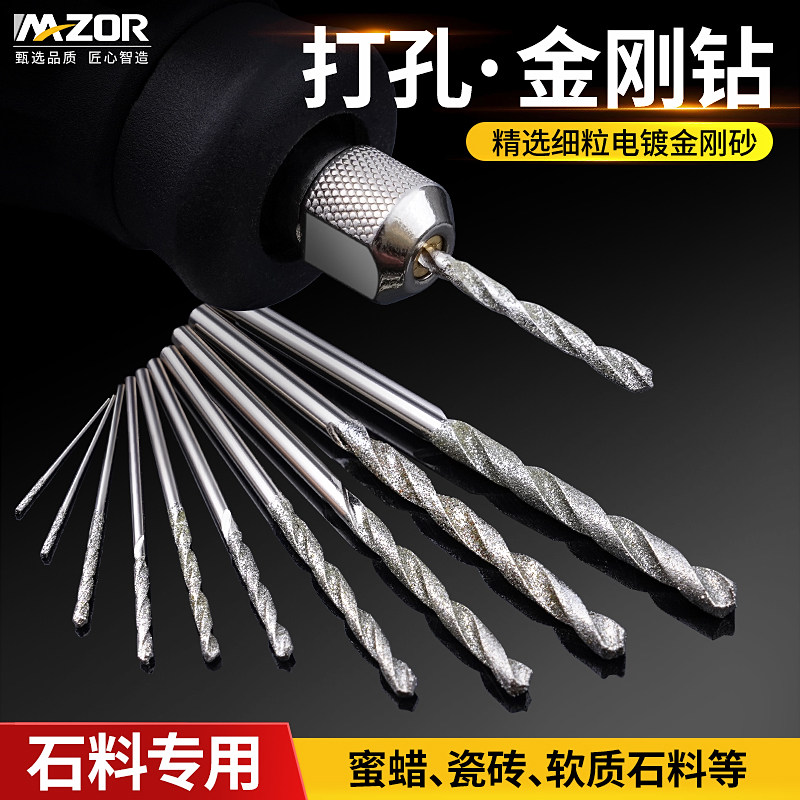 📚 金刚砂麻花钻头瓷砖打孔空鼓修复蜜蜡石料电动扩U孔圆孔钻眼神器