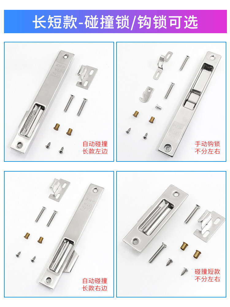 📚 老式90型不锈钢勾锁自动碰锁铝合金门窗锁扣推拉门锁移窗钩锁配件