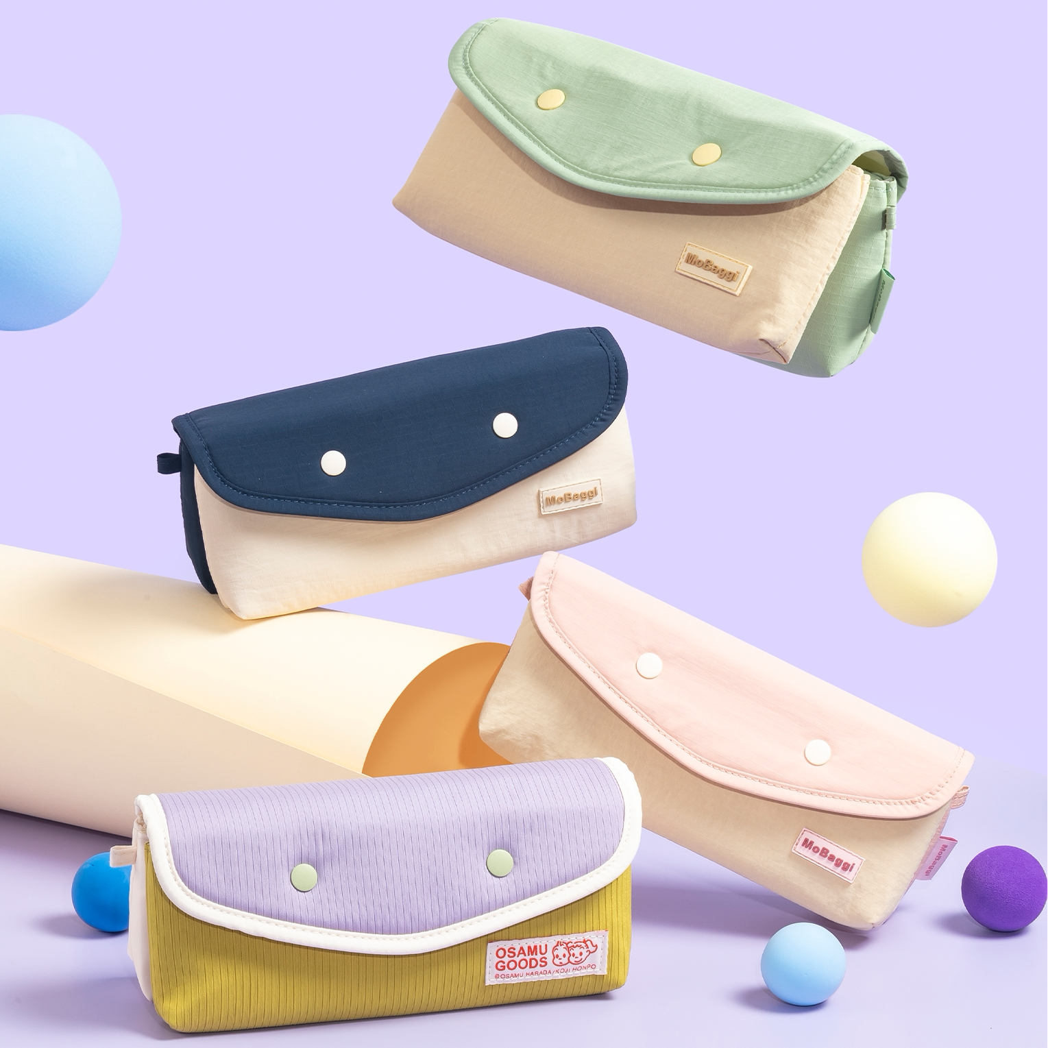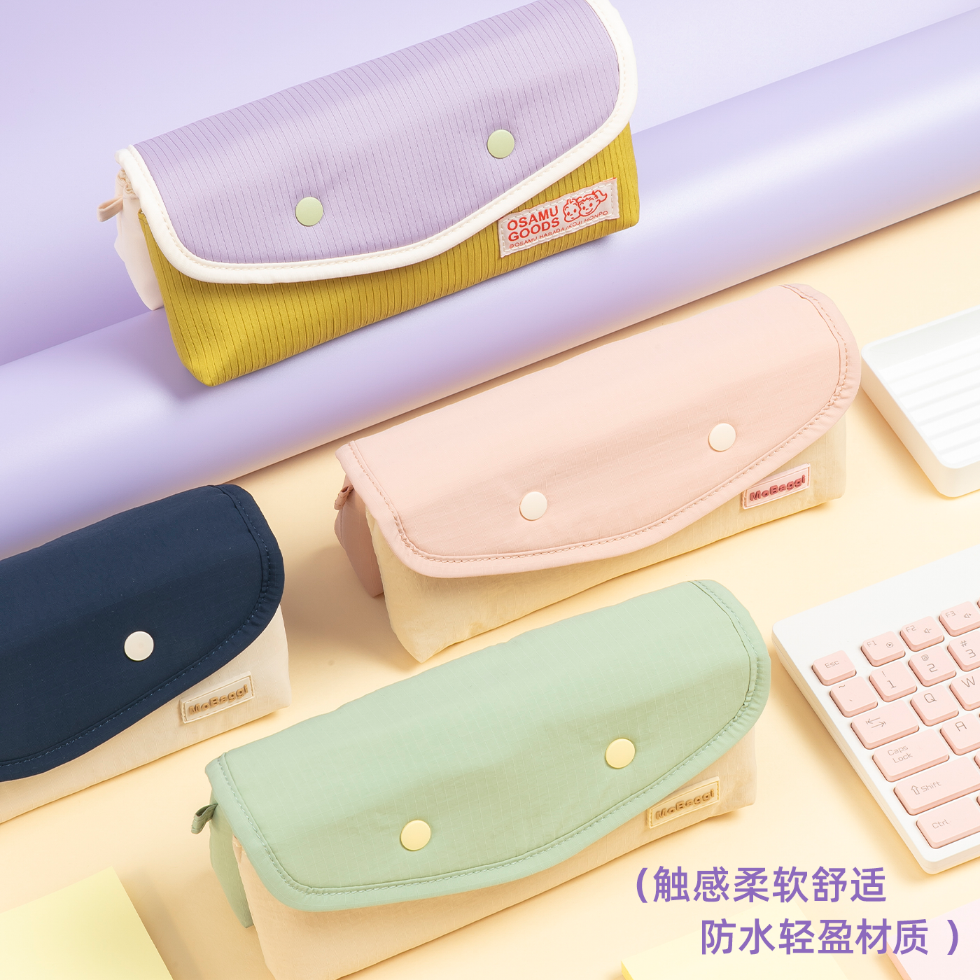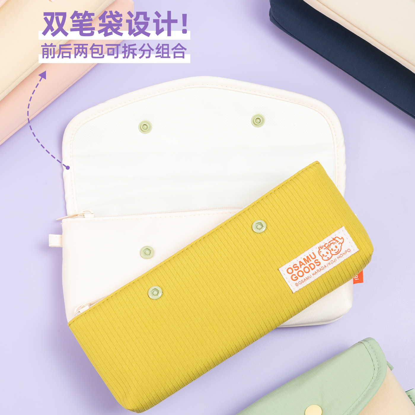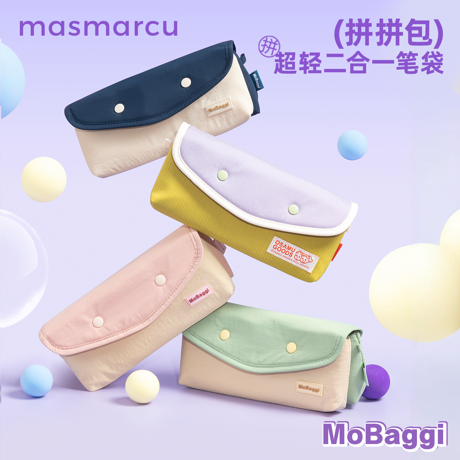📚 晨光mobaggi拼拼包双笔袋原田治联名时尚拼色按扣笔袋高颜值超轻二合一可拆卸多功能文具收纳包糖果色文具袋