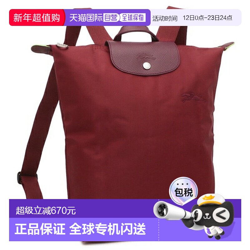 📚 日本直邮Longchamp Pliage 绿色双肩包M码酒红色男女通用LONGCHAM