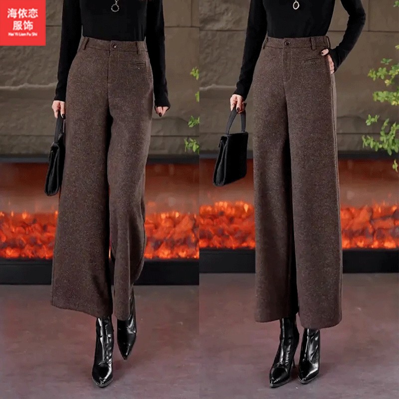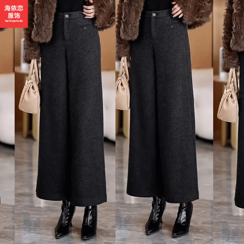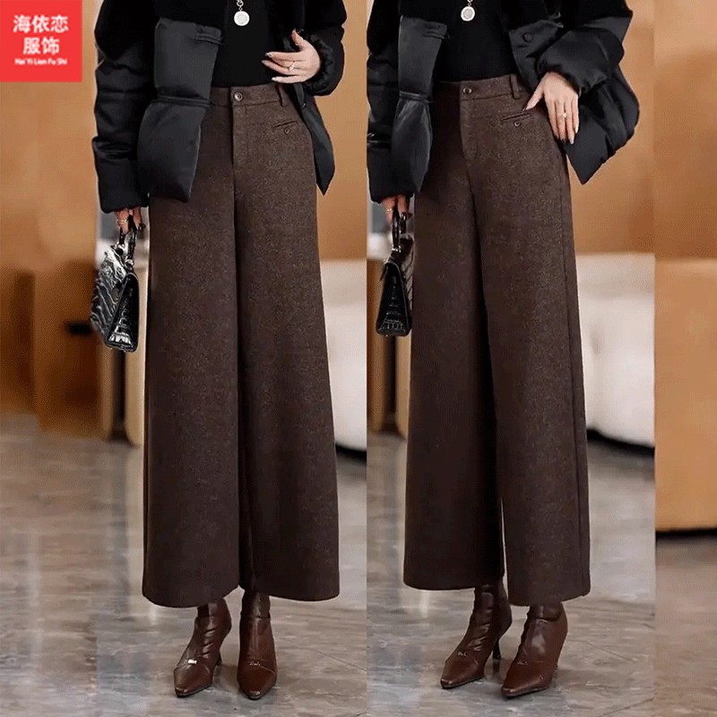 📚 高端加绒毛呢阔腿裤女2026新款秋冬高腰显瘦九分小个子垂感直筒裤