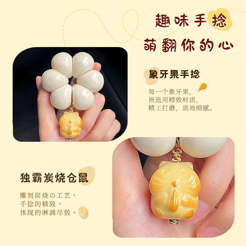📚 雕刻象牙果山竹小手捻女蒜瓣指尖绕指柔菩提手串女生盘玩文玩佛珠