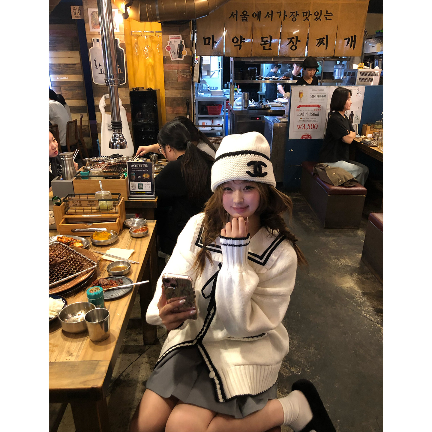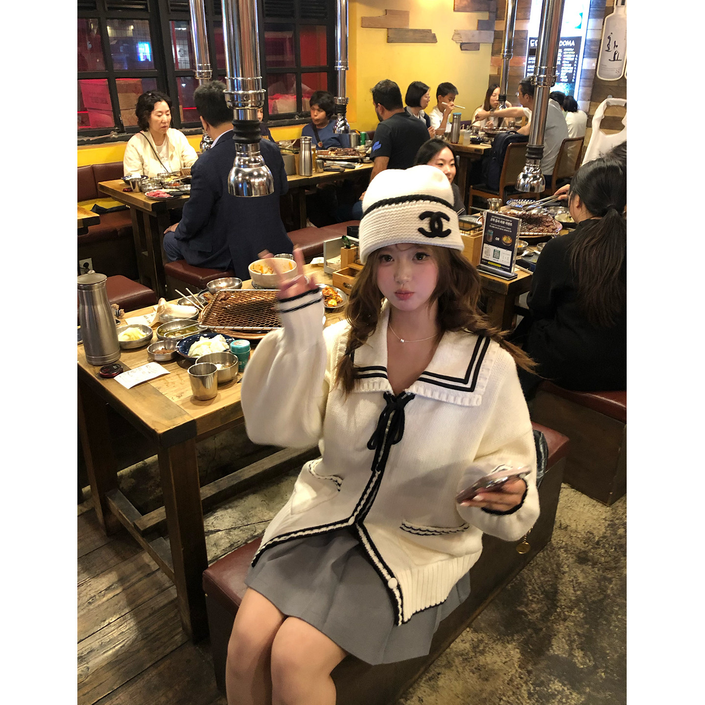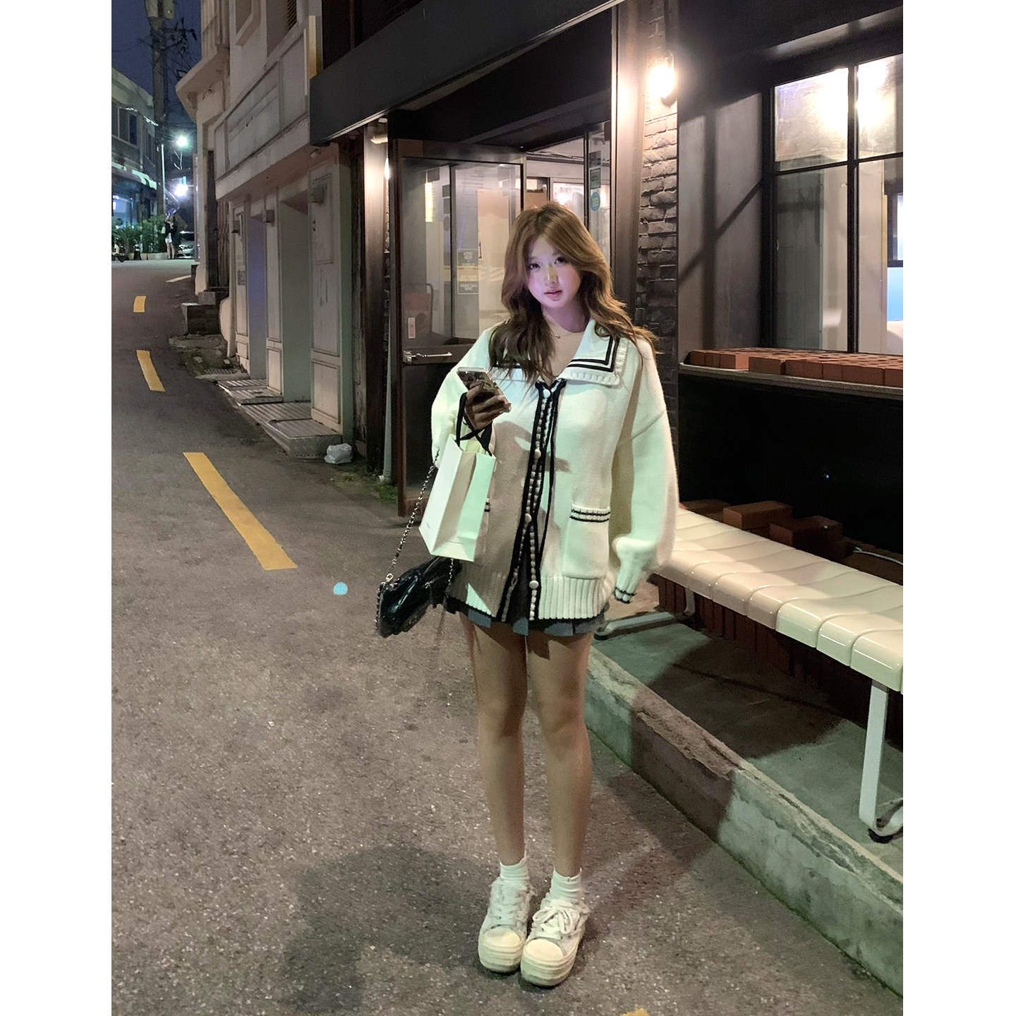 📚 你的鱼 冬日邮差 韩系微胖mm清纯黑白撞色蝴蝶结毛衣外套半裙套装