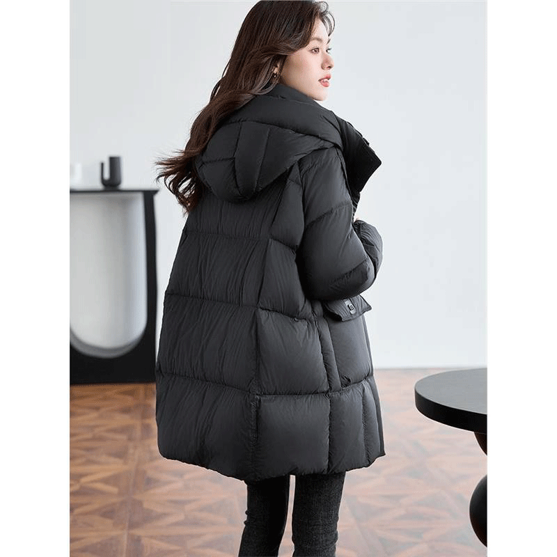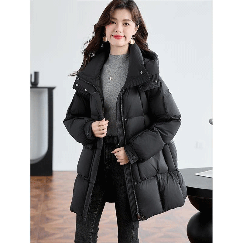 📚 一手长黑色2025冬季新款羽绒服女中长款修身显瘦小个子连帽外套潮
