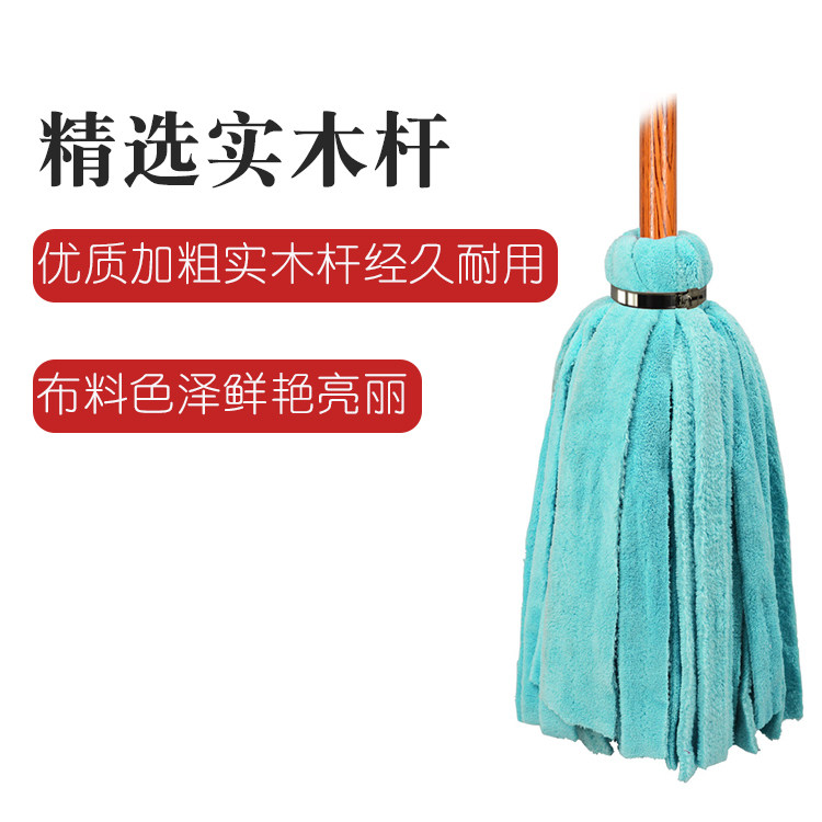 📚 纤维木杆拖把圆头毛巾墩布长条棉线老式传统手拧吸水家用地板普通