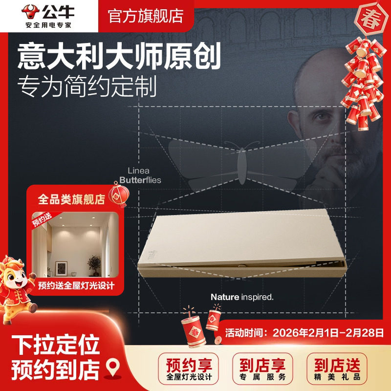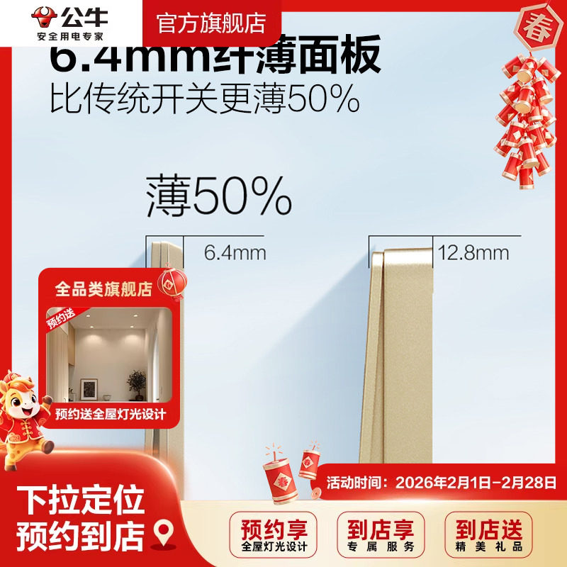 📚 【门店同款】公牛插座旗舰店G56墙开金色家用一开双控墙壁开关