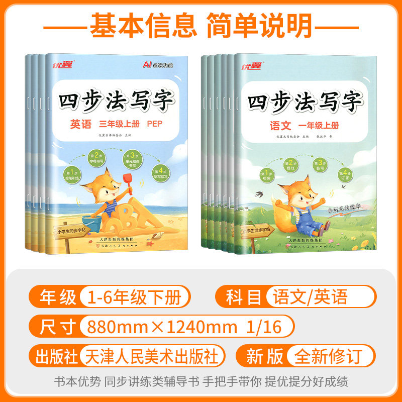 📚 优翼四步法写字语文英语临写本一二年级三年级四年级五年级六年级上册下册同步字帖人教版字帖英文写字小学生专用练字帖每日一练