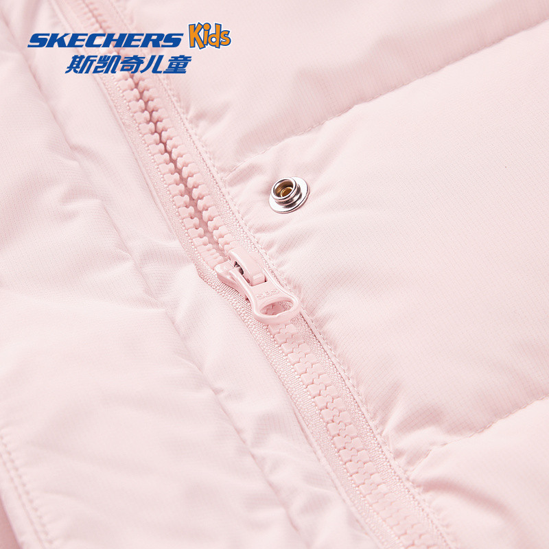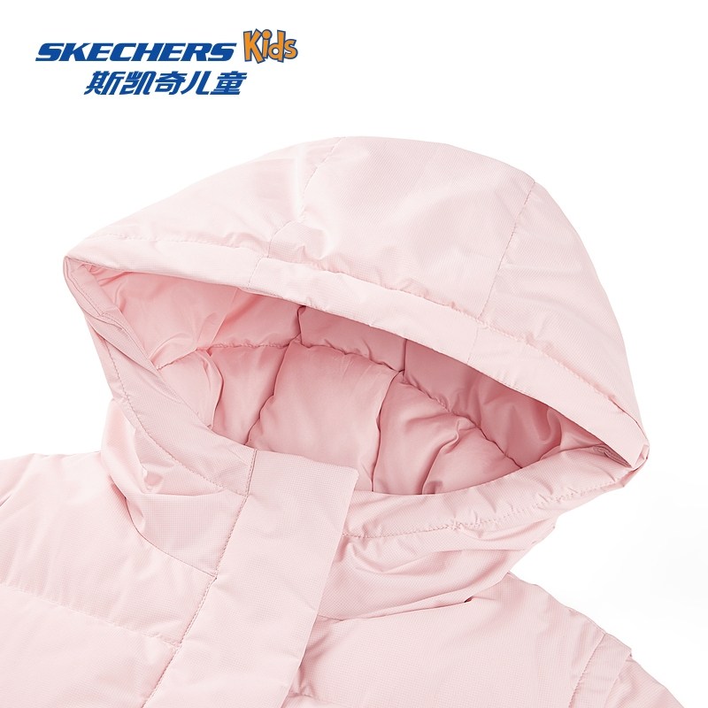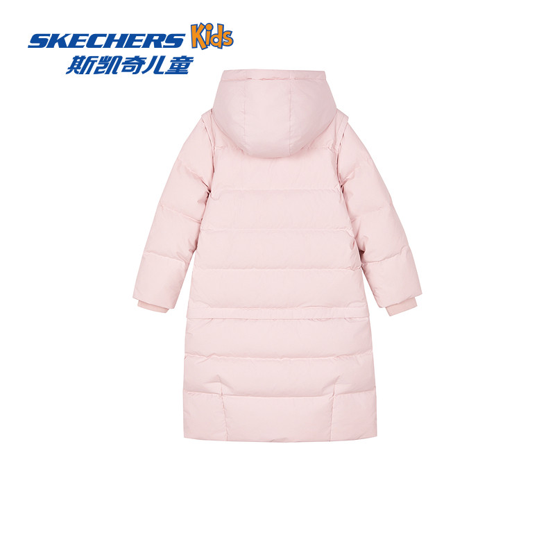 📚 Skechers斯凯奇童装女童长款羽绒服连帽冬季儿童防风保暖立领外套