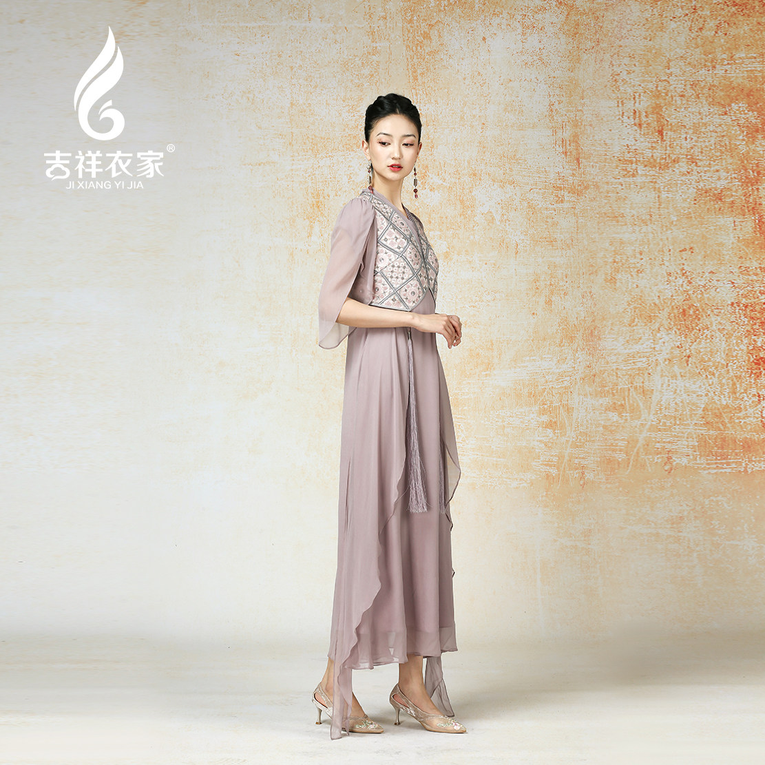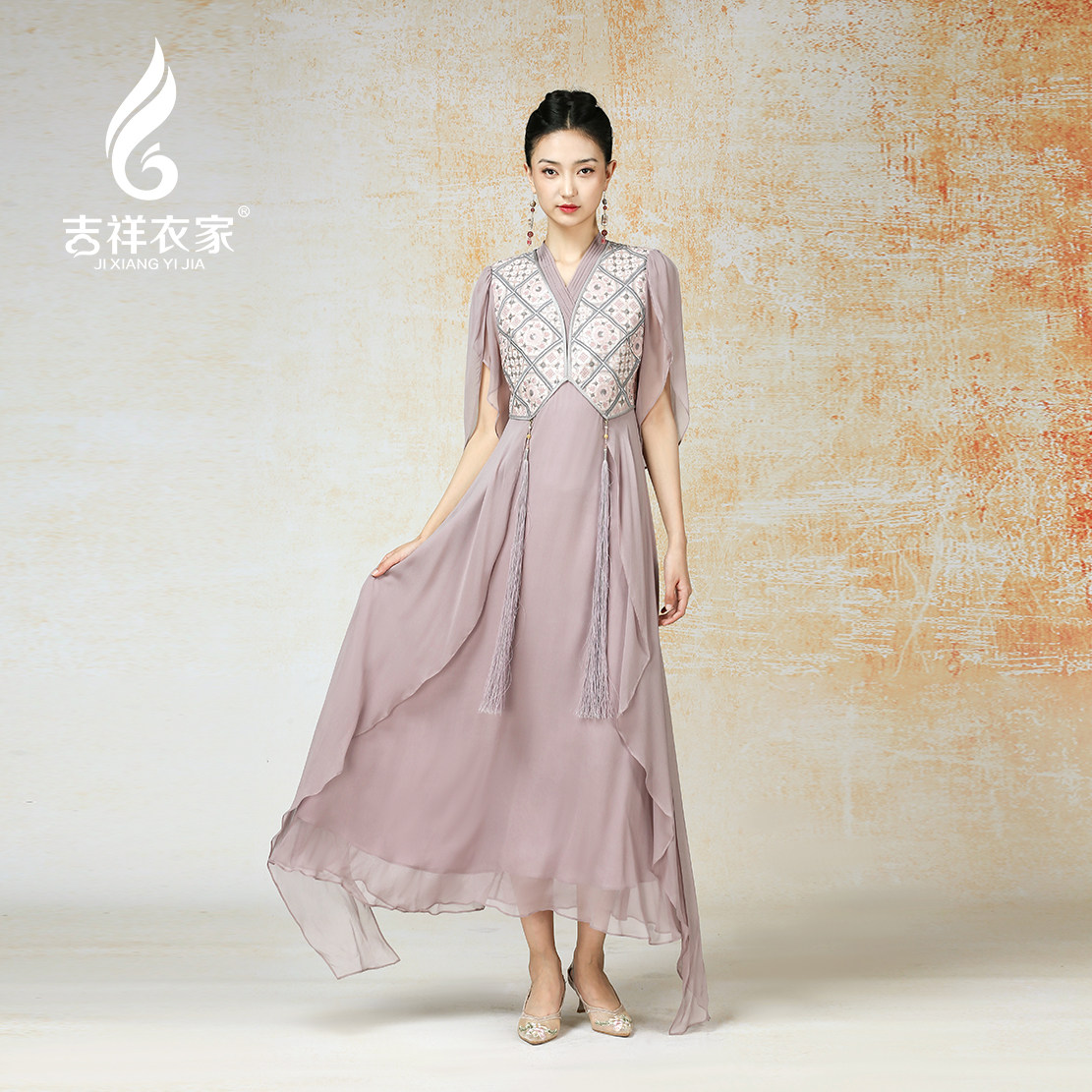 📚 吉祥衣家新中式国风高定真丝气质显瘦修身女装盈盈一水间连衣裙