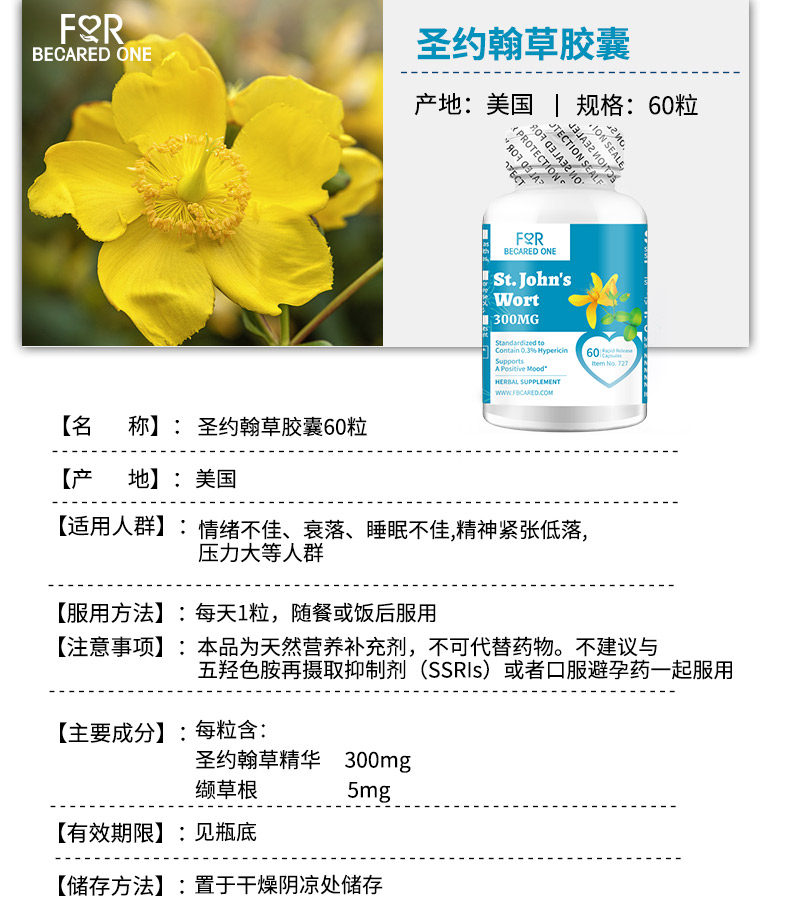 📚 FBO圣约翰草片多巴胺分泌缓解焦虑胶囊血清素降低皮质醇助内啡肽